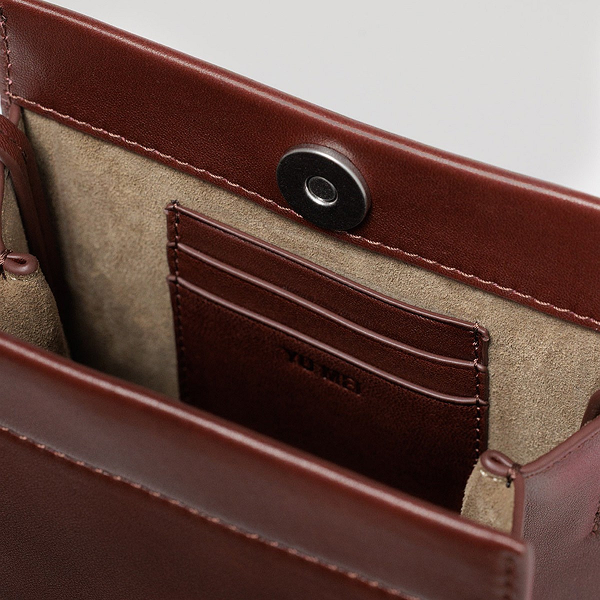 Originally conceived as a travel companion, its namesake is no longer a hapless traveller, but the Georgie Bag will still weather your journey with you. Complexity resolved, adventure encouraged. Premium lambskin exterior, bonded lambskin lining, lambskin strap with custom buckle fastening, magnet closure, three internal credit card slots, front passport pocket and custom Yu Mei hardware.