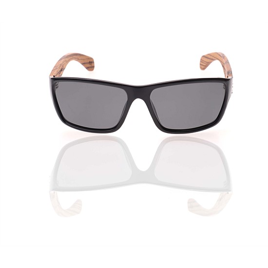 Wraparound sunglass frame with grey polarised lens