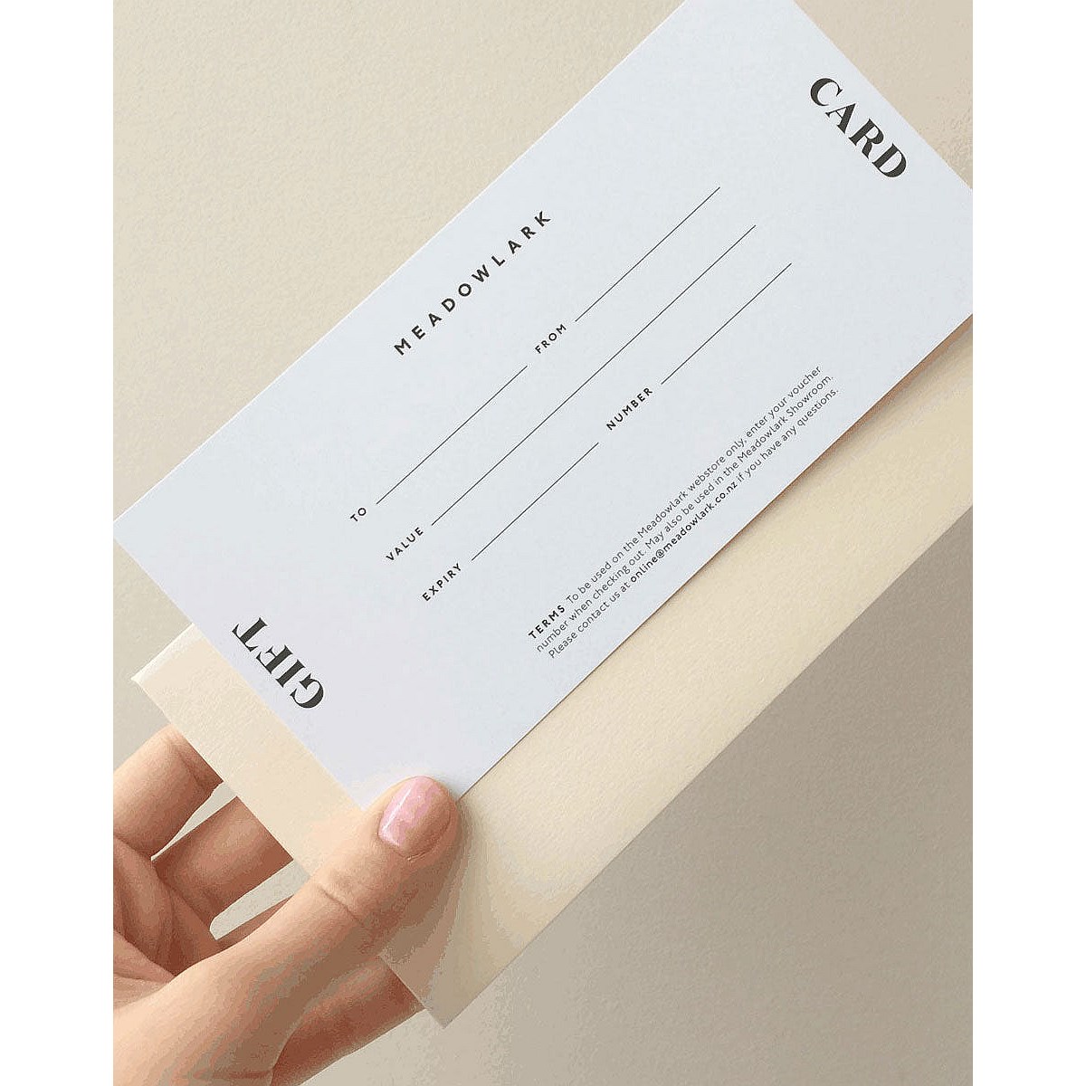 The gift voucher is redeemable only on the Meadowlark website, or in person at the Meadowlark Auckland Showroom.