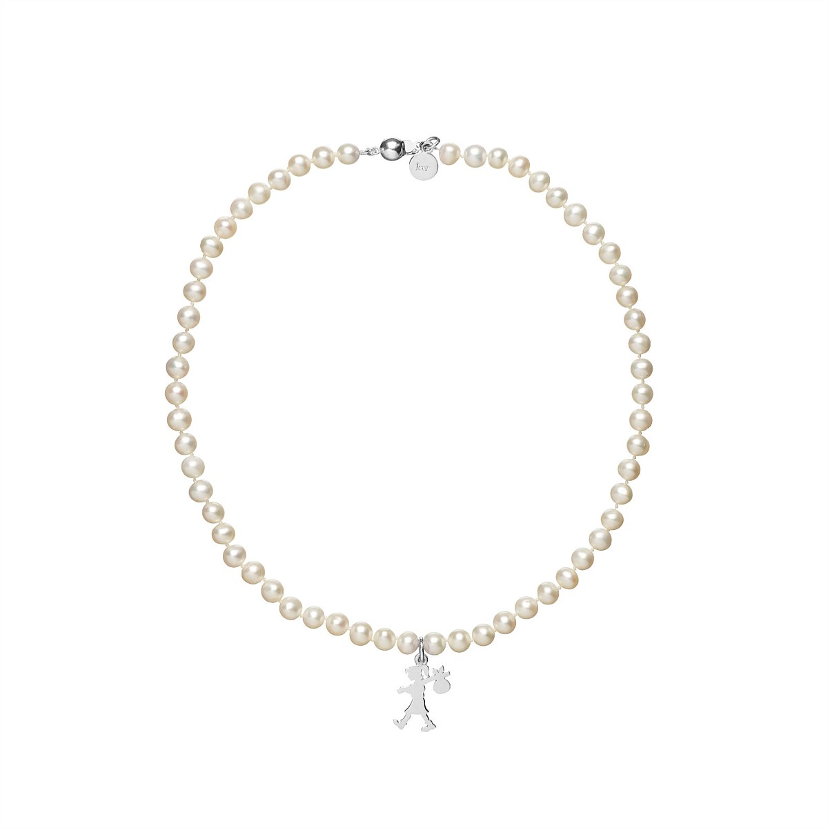 Combining timeless elegance with a fearless and intrepid spirit, Karen Walker’s iconic Runaway Girl is suspended from a lustrous strand of white freshwater pearls for this fresh take on the classic pearl necklace.