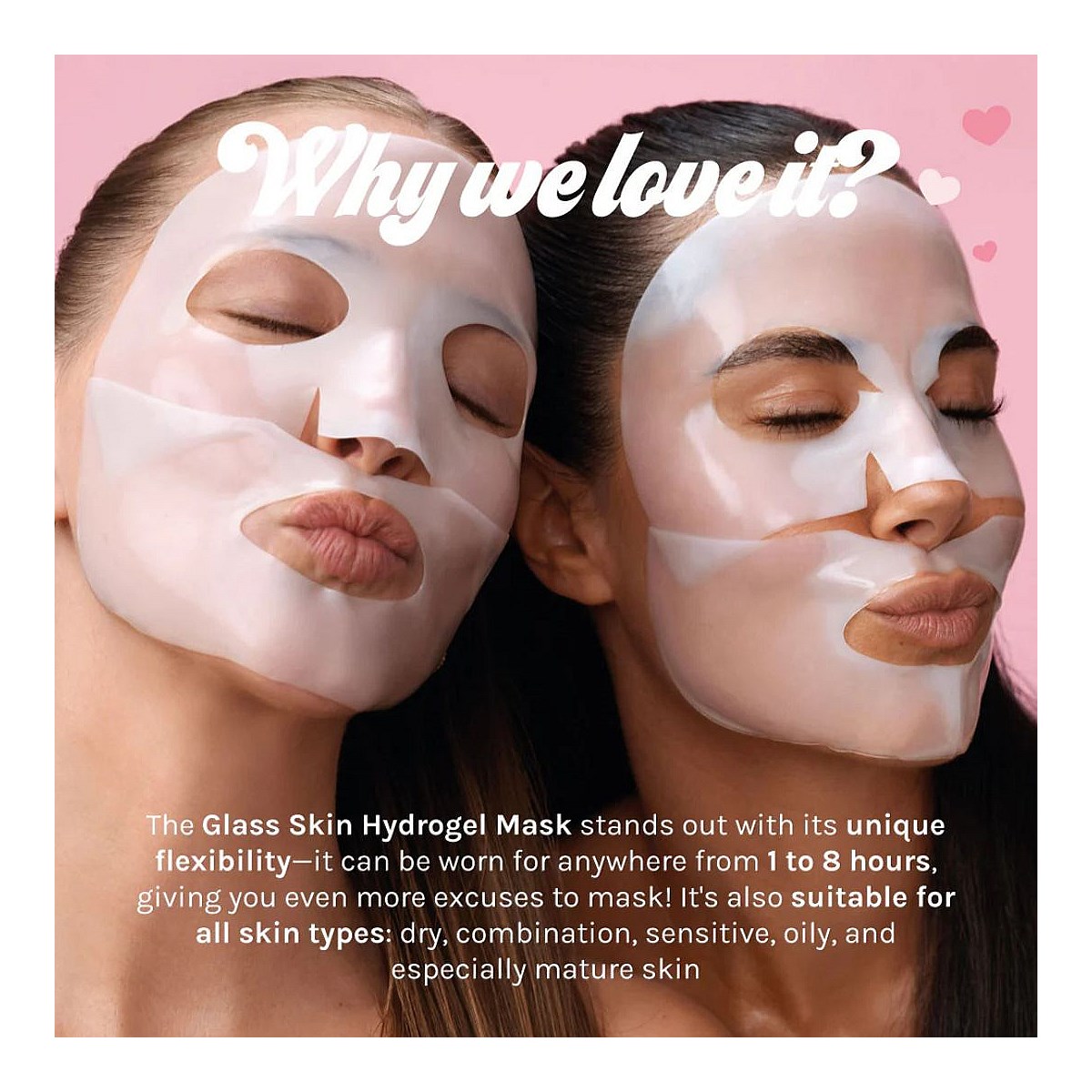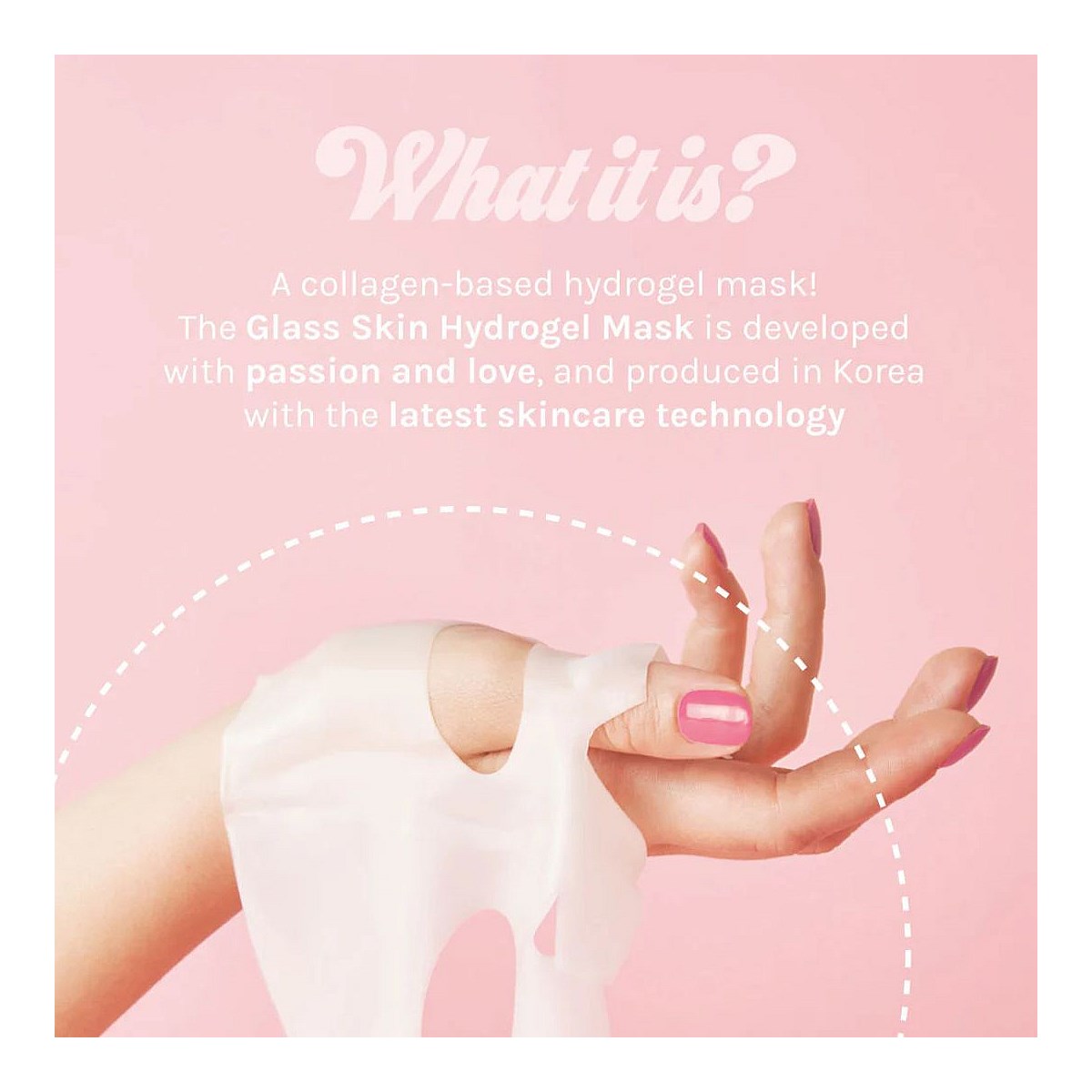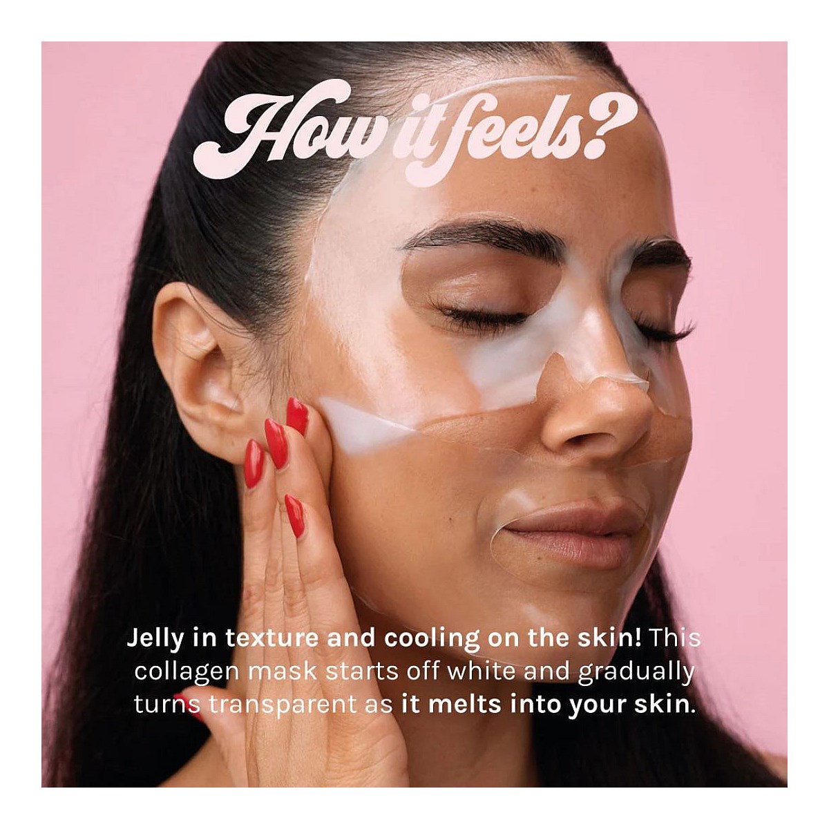 Developed using hydrogel technology, the Glass Skin Hydrogel Mask starts as a juicy white mask that gradually becomes translucent as it melts into the skin.