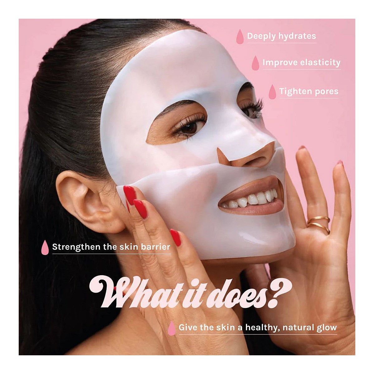 For an optimal glow and best effect, apply the mask after finishing your entire skincare routine, including toner, serum and moisturiser. Leave it on for 1 to 8 hours, depending on what your skin needs and what suits your schedule. Let the mask do its thing while you watch a movie, sleep, or as a pre-party glow touch!