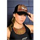 A black & orange leopard print cap with embroidered Sweat logo at the front and adjustable back strap.