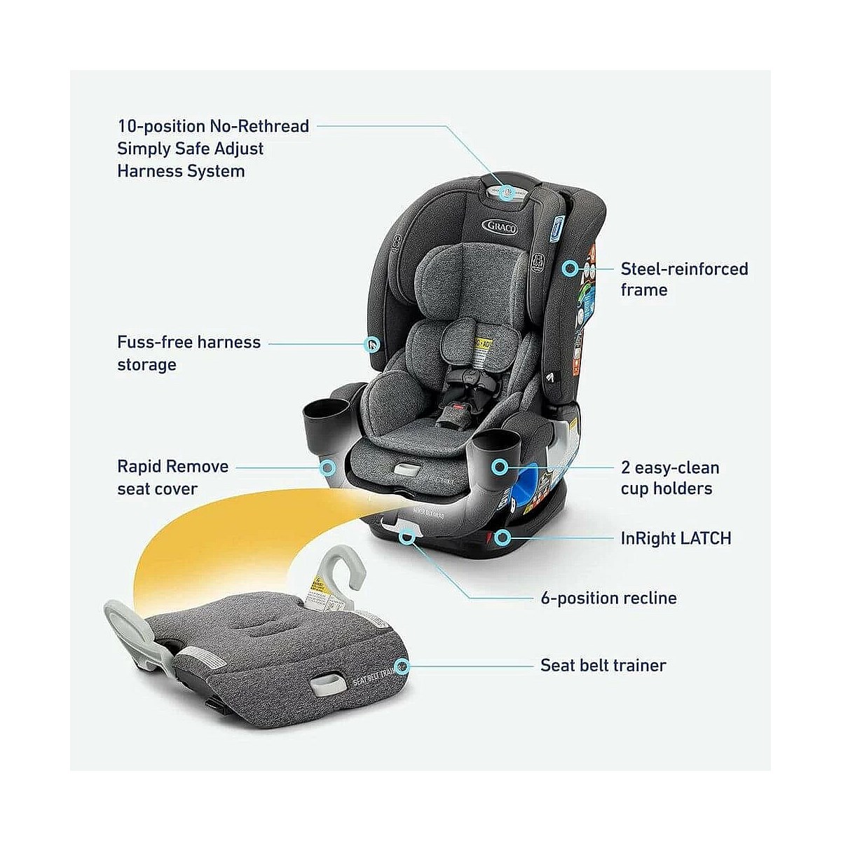 The 4Ever DLX Grad 5-in-1 Car Seat is the first car seat to offer 5 modes of use and is designed to fit children ranging from infant to 12 years old. It includes a removable seat belt trainer to help keep your child riding safely for longer, making the 5-in-1 car seat comfortable for your child and convenient for you.
