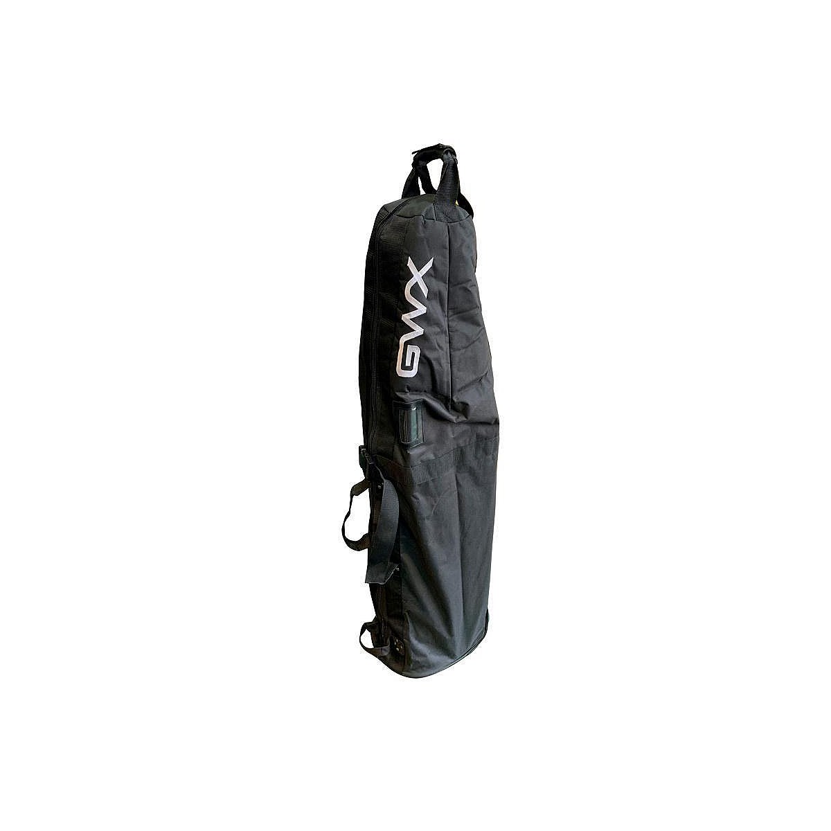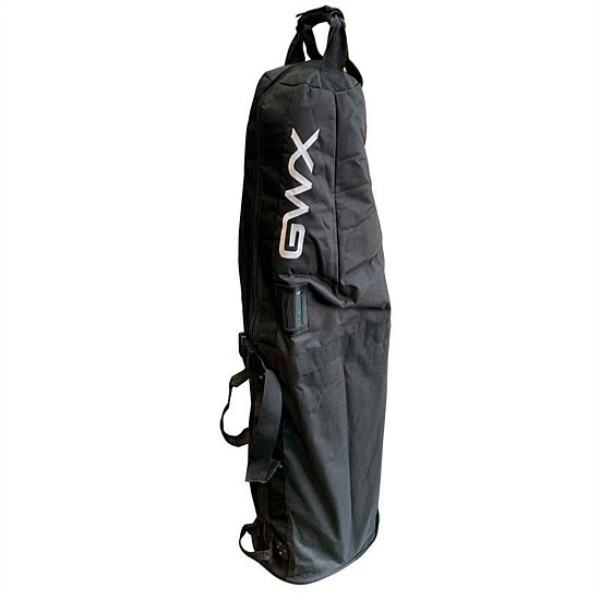 Firm back board with two wheels to easily pull through Airport Terminals or car parks.