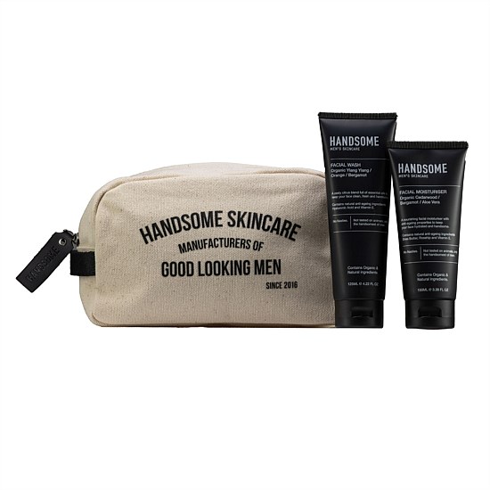 Handsome Essentials Set contains two of our top-selling products: Facial Wash 125ml + Facial Moisturiser 100ml, in a cream canvas washbag.