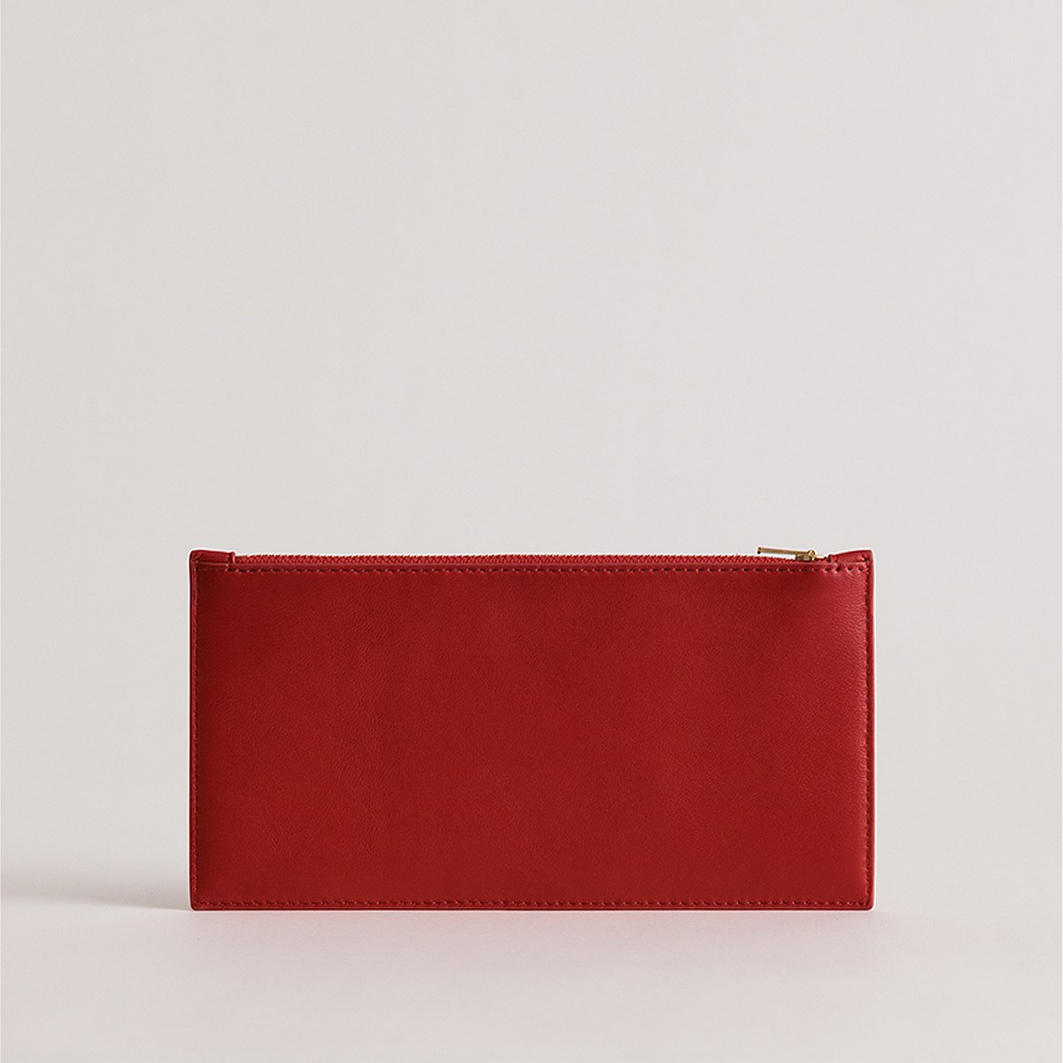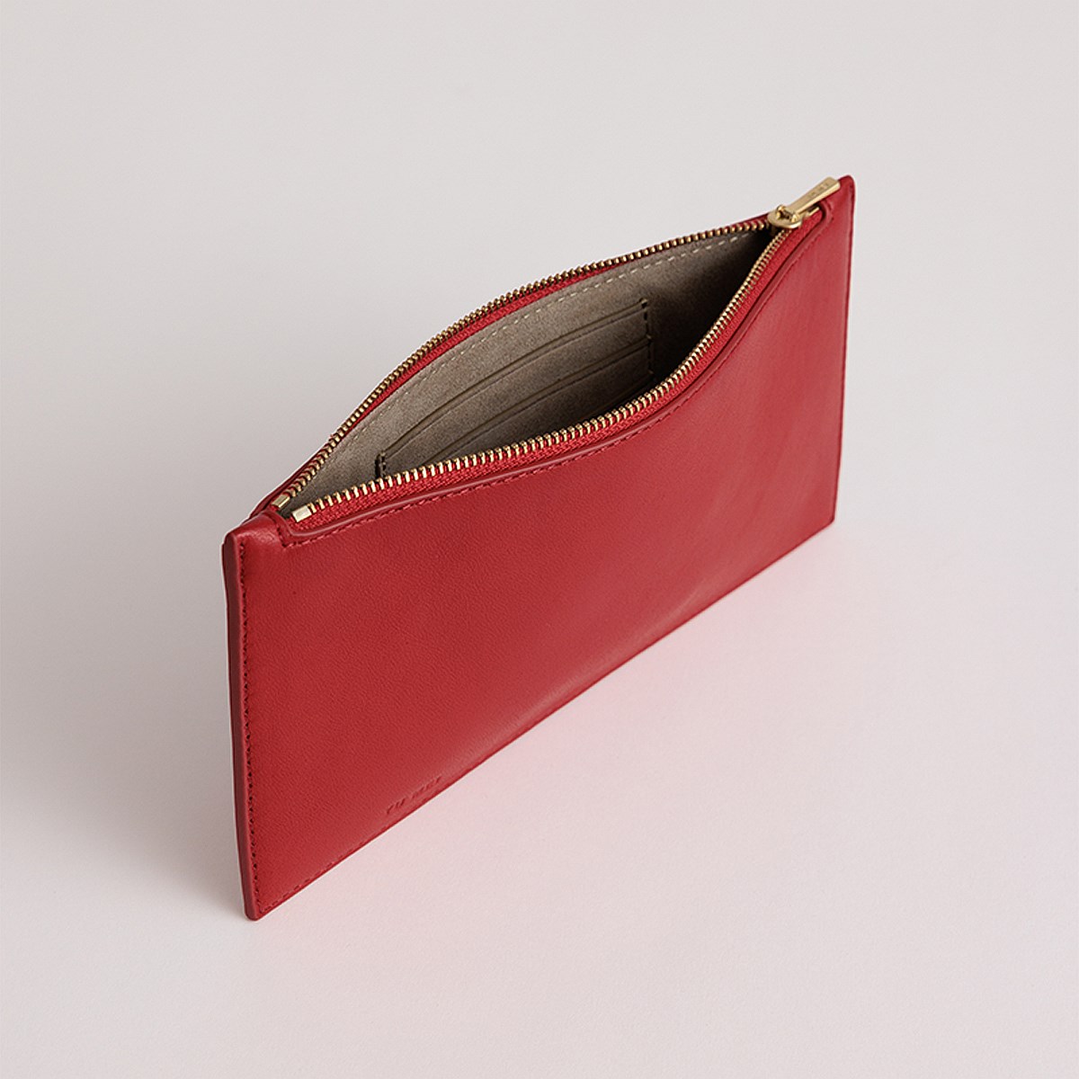 Designed to fit a passport, phone and essentials, she features a secure zip top, recycled suede lining, and four card slots. Her slim, structured form and hand-painted edges make Hannah an elegant piece to carry in hand or slip into a larger bag.
