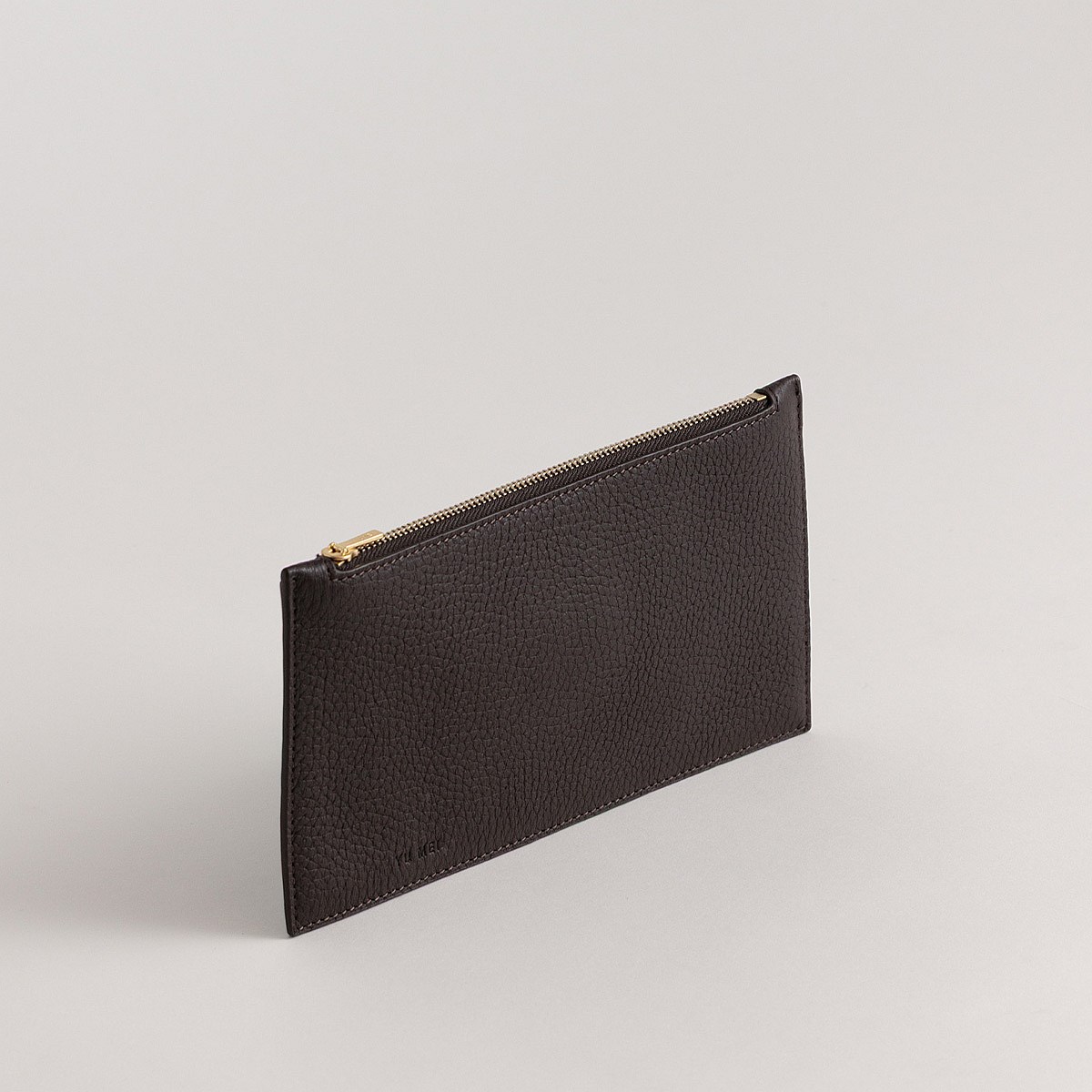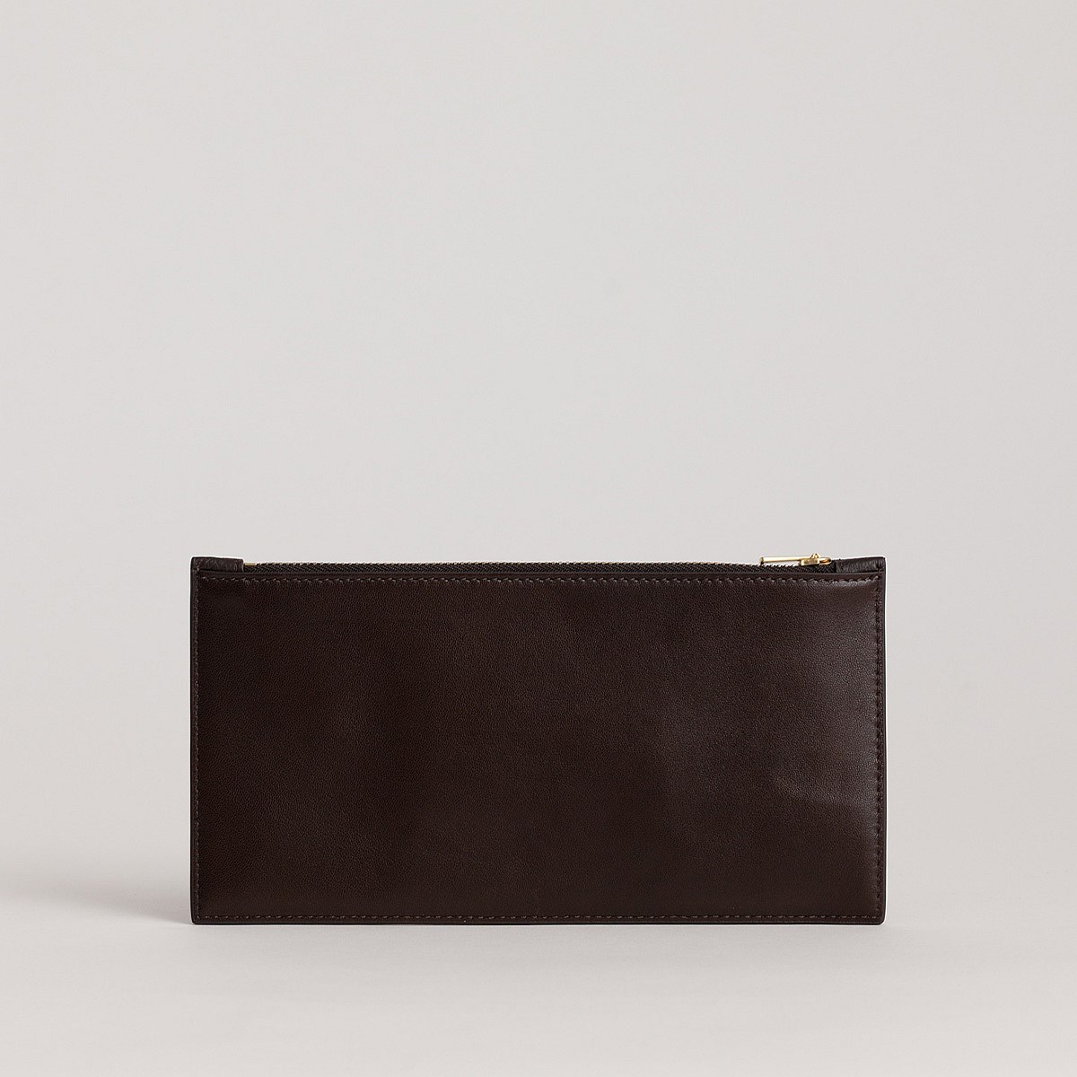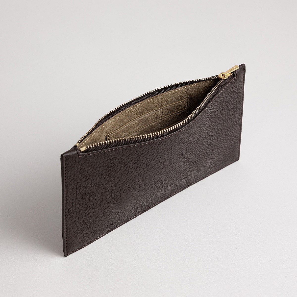 Designed to fit a passport, phone and essentials, she features a secure zip top, recycled suede lining, and four card slots. Her slim, structured form and hand-painted edges make Hannah an elegant piece to carry in hand or slip into a larger bag.