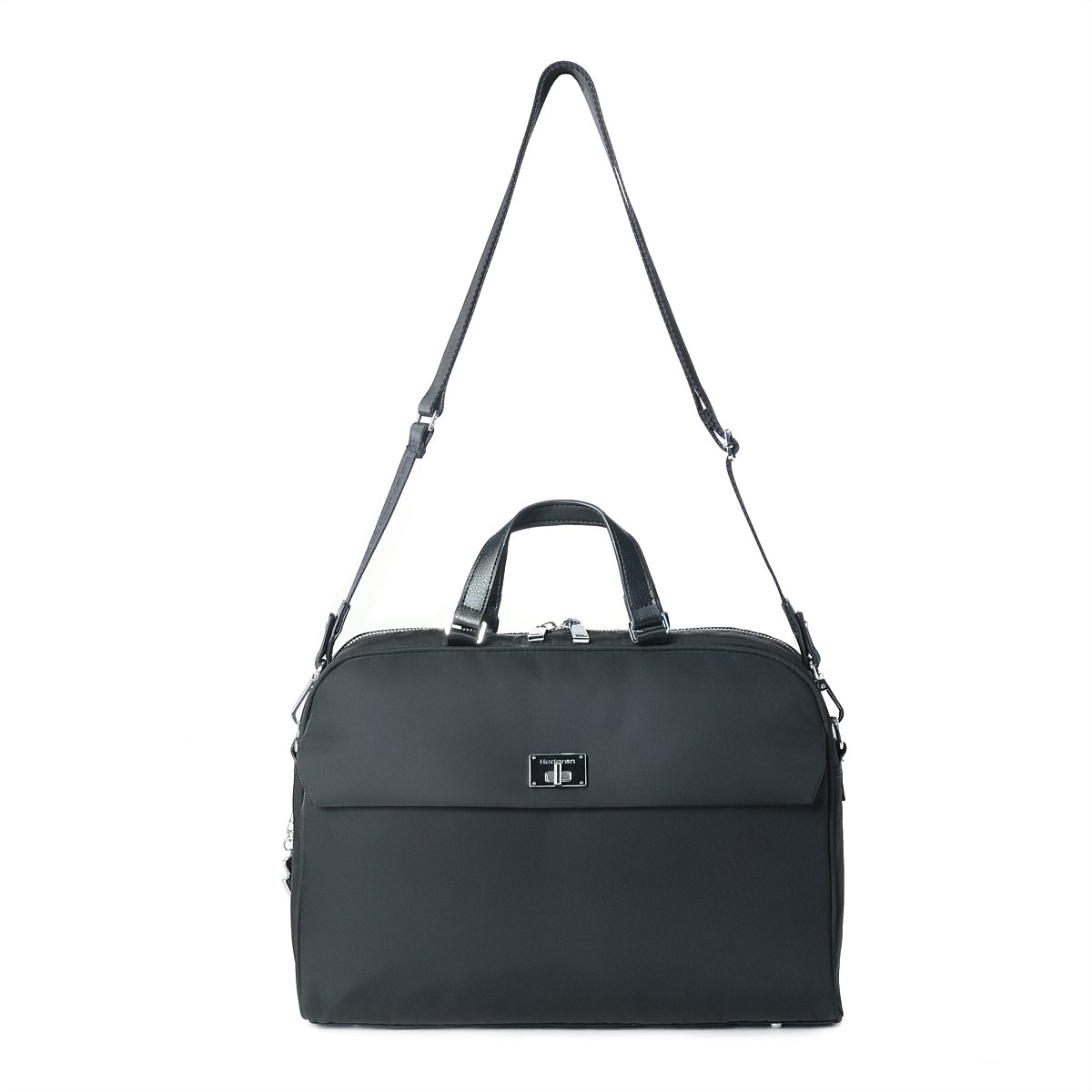 When chaos is all around, you won’t need to look far to find your Harmony business handbag. This elegant piece is perfect for the office, adding practicality and style to your workday. Of course, this bag is water repellent, with a protective RFID pocket for sensitive items and a fleecy compartment for your laptop. Keep your office keys safe on the useful keychain and carry folders and files with ease, thanks to the roomy A4 interior. The comfortable straps detach with ease and the smart aesthetic is perfectly complemented with a shiny enamel buckle and matching hardware.