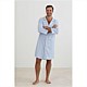 Blue and white stripe nightshirt features a long-sleeve button-down design with a classic collar and breast pocket.