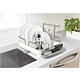This dish rack is made of molded plastic and has a stainless-steel frame making it both durable and easy to clean. Holster has a 15-plate capacity, utensil storage, moveable stemware holder, a multi-purpose side tray and dual position drain spot. With soft, curved lines, this low profile, molded plastic caddy is a modern but approachable piece for everyday kitchen use.