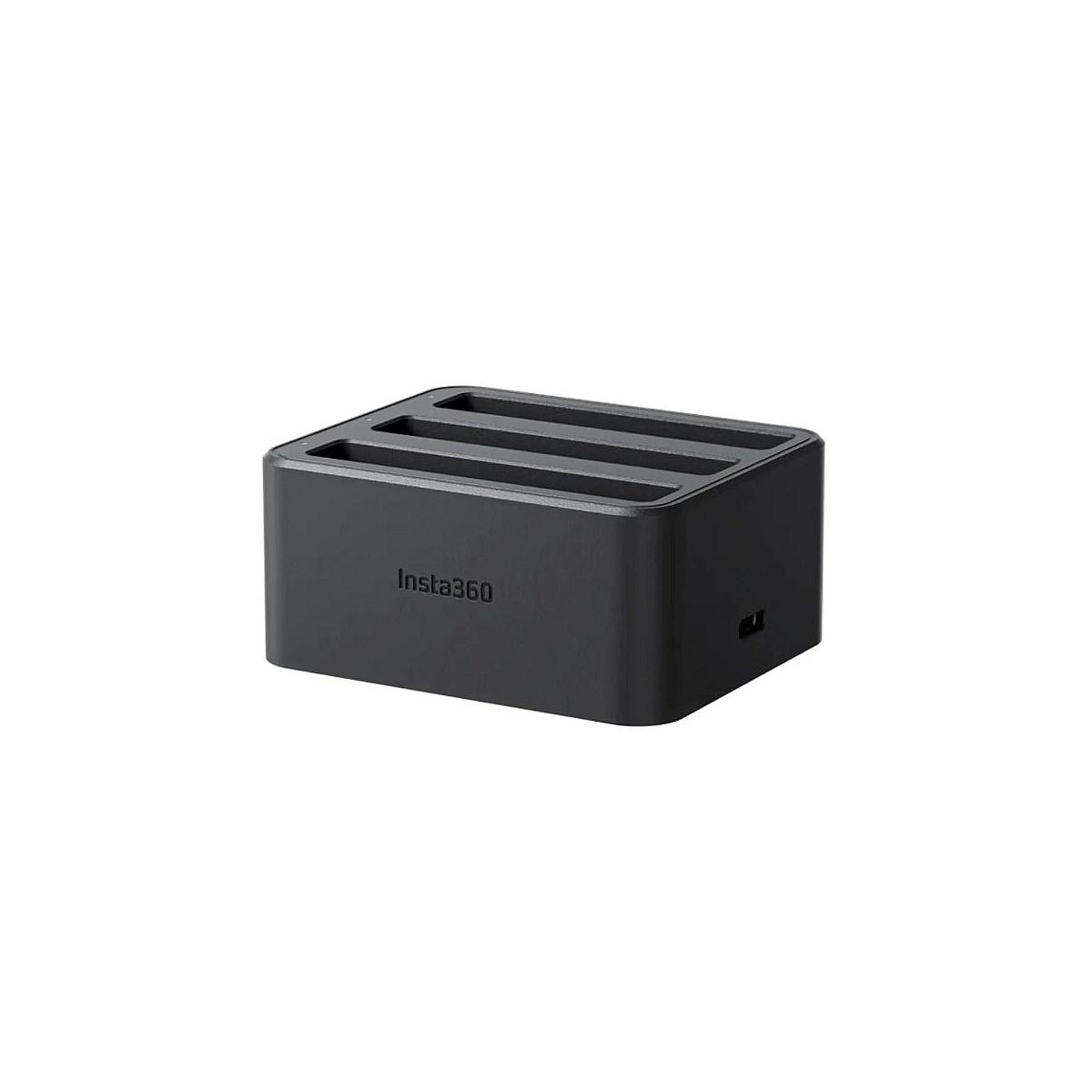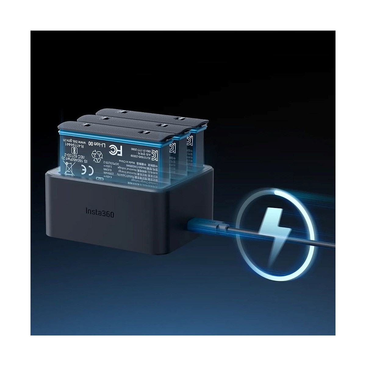 Recharge up to three batteries for your X4 camera in just 43 minutes using this Fast Charge Hub from Insta360. The hub can charge three 2290mAh batteries simultaneously. The USB-C port supports PD fast charging, which can get your batteries to 80% charged in 26 minutes. LED indicators display the status of each battery slot for easy monitoring. Use the included USB-C cable to connect the hub to a power source of your choice.