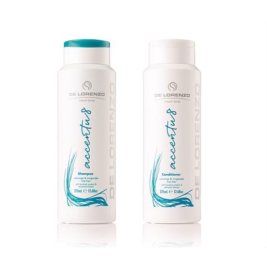 De Lorenzo Instant Accentu8 Shampoo gently cleanses fine hair leaving it with brilliant volume and shine. It contains ginseng, sea kelp extract, cucumber, rice amino acids, soy protein and mixed fruit extracts. Apply to thoroughly wet hair and lather. Rinse and repeat.100% Cruelty free and Vegan Certified.