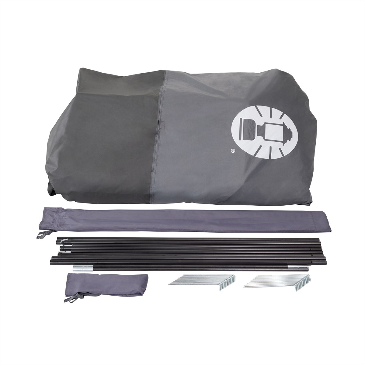 - For added shade and gear storage, a front vestibule, and awning (plus poles) have been included within the design.