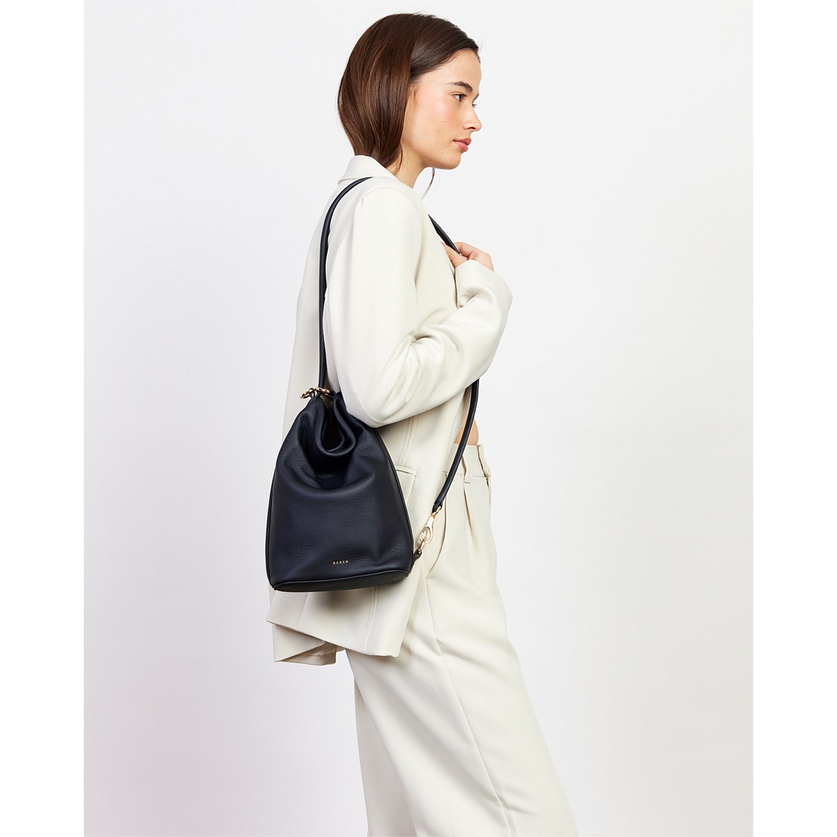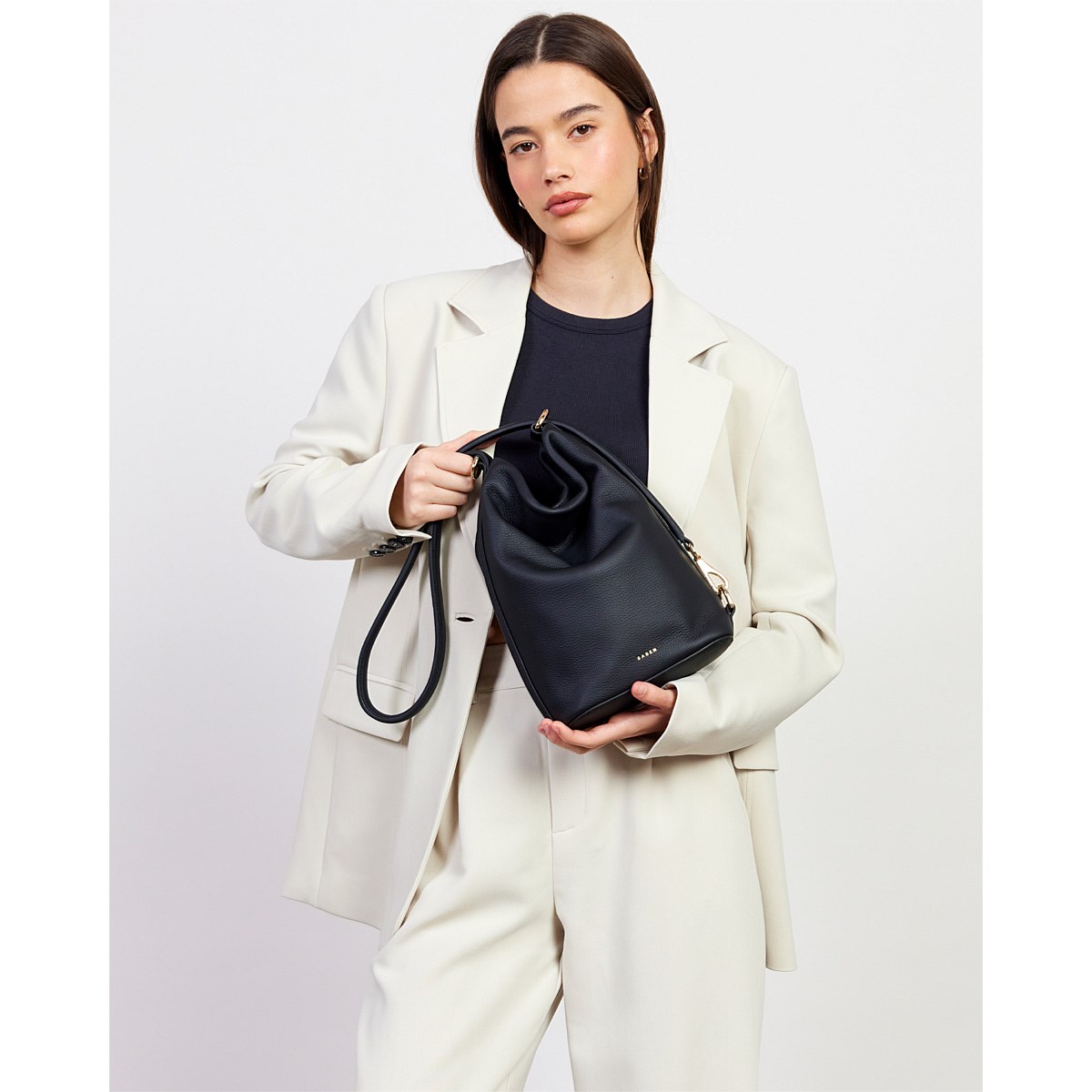 A sleek mid-sized bucket style bag; the smaller sister to our generous bucket tote June. Jojo delivers the same sophisticated functionality in a more compact form. Perfect for those who prefer to carry with intention rather than excess, while maintaining the effortless style transition from shoulder to crossbody wear. Simply unclip the signature SABEN hardware to transform it into a chic crossbody – versatility refined.