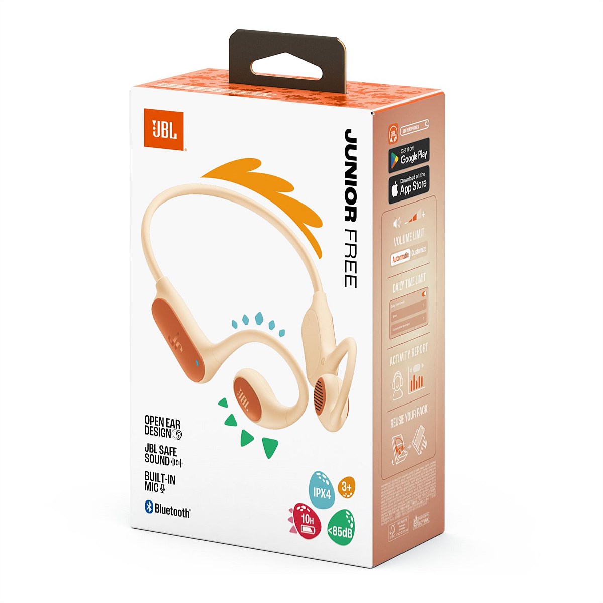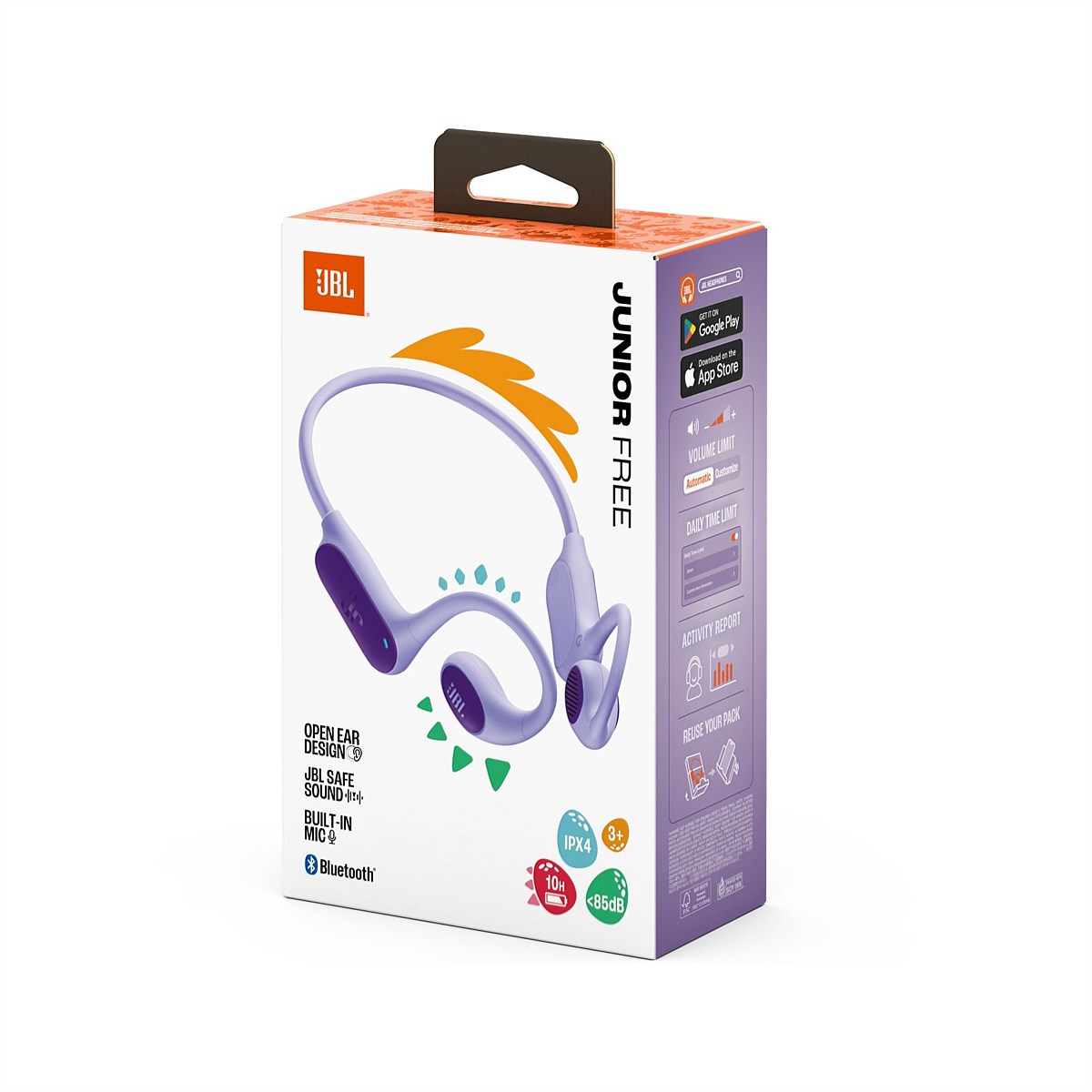 Colorful, durable wireless open-ear headphones with JBL OpenSound, JBL Safe Sound volume limits, a kid-friendly neckband, and easy parental controls through the JBL Headphones app