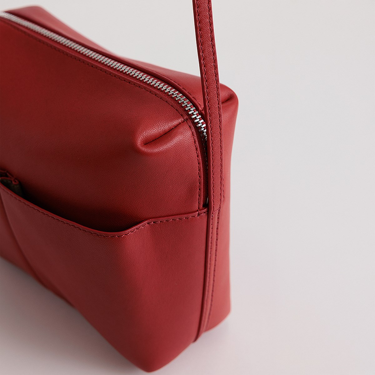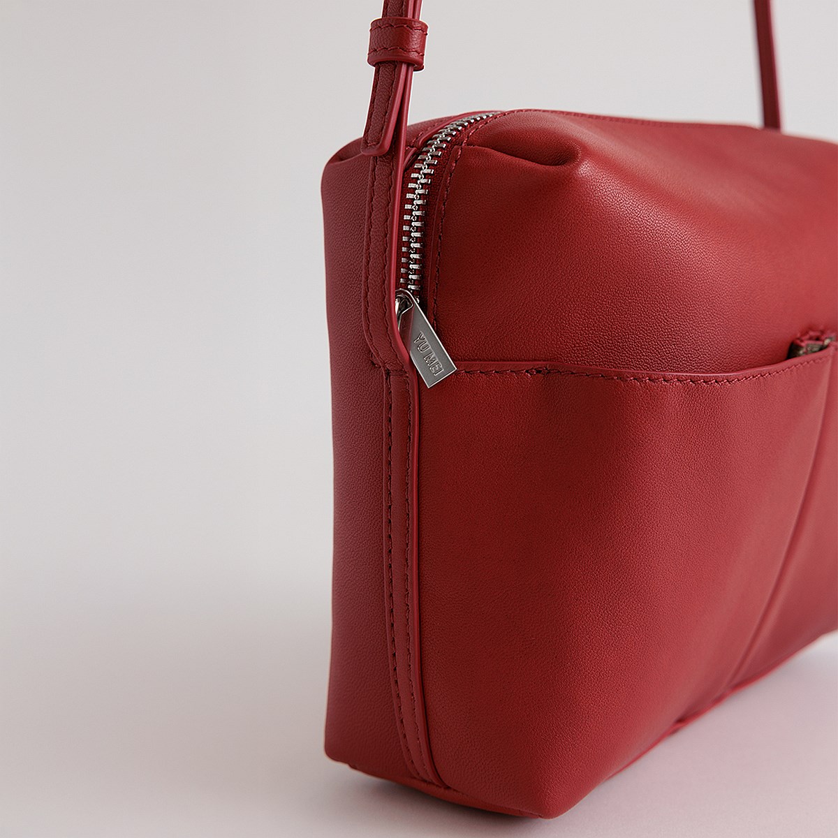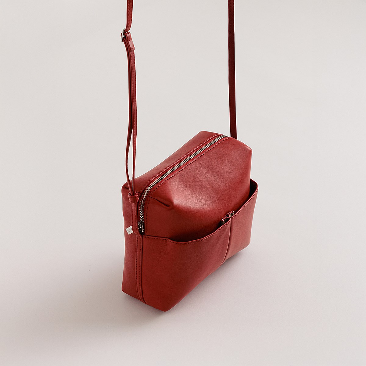 Crafted from premium lambskin, Kaye features external pockets, recycled suede lining and chrome hardware.