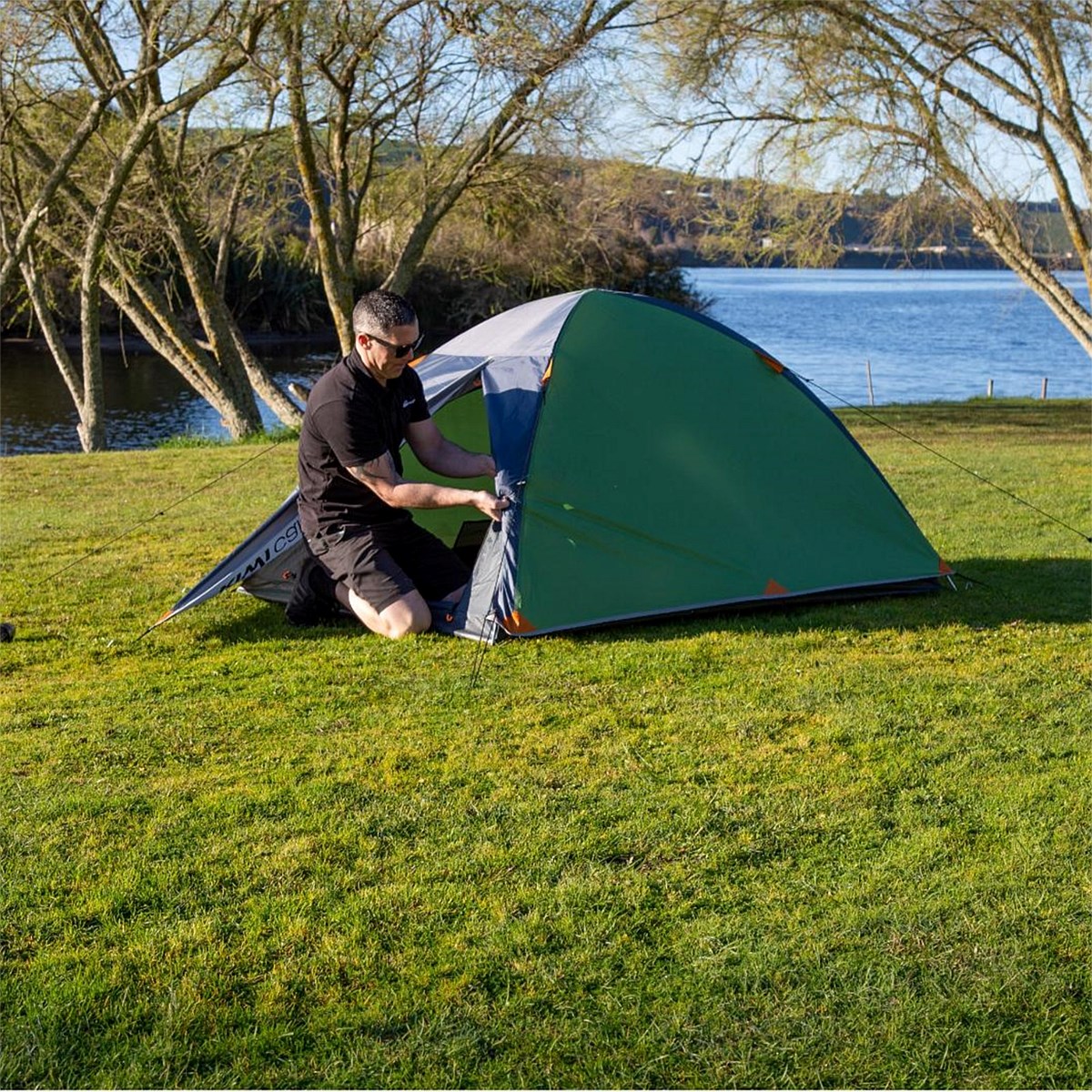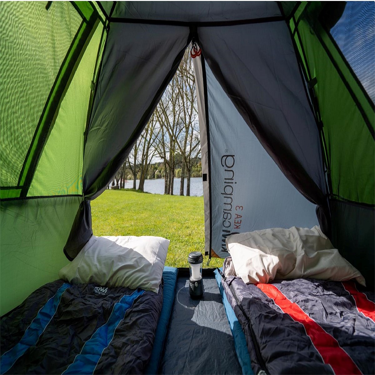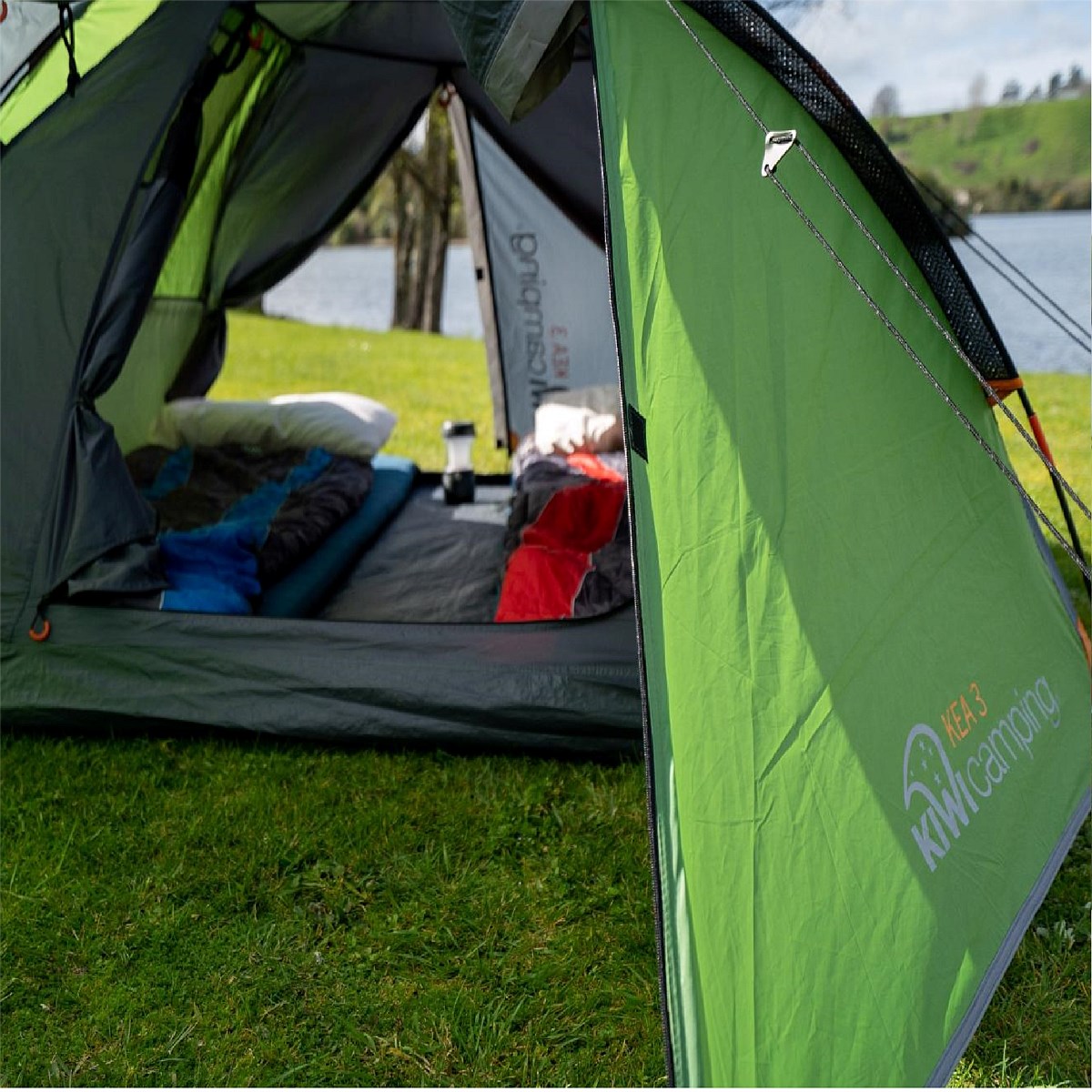 The Kiwi Camping Kea 3 is a great weekend away tent, compact and lightweight, with storage area and windows for ventilation. Ideal for festivals and weekends away.