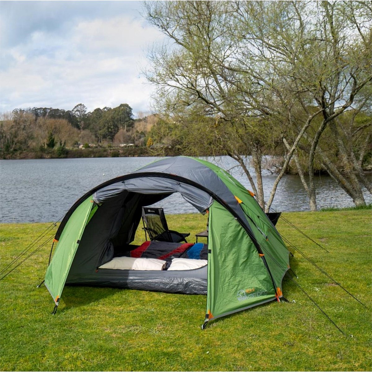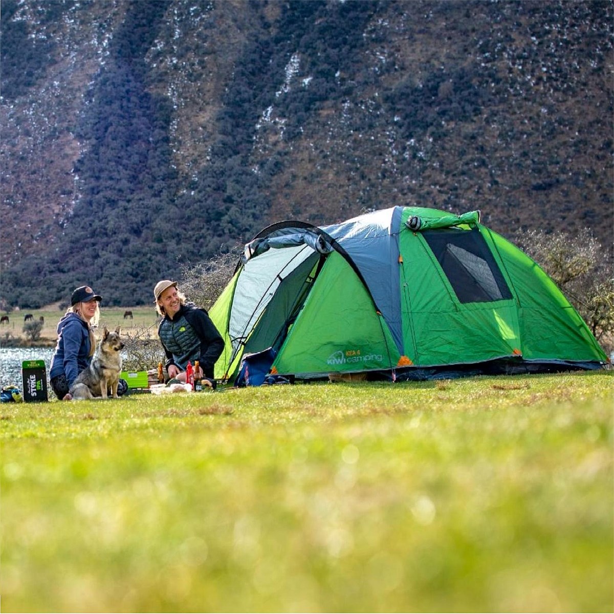 The Kiwi Camping Kea 4 is the ultimate recreational tent with 2 entrances, 2 windows and a vestibule for extra storage. Perfect for family getaways and a great first tent for children.