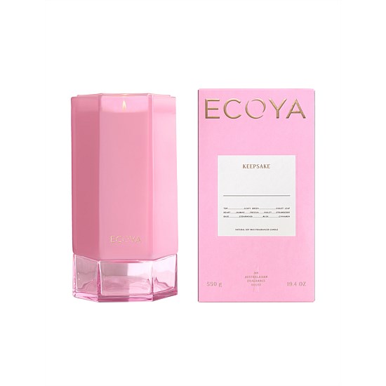 A fragrance to hold onto. Encased in a sculptural six-sided coloured cut glass jar, the Keepsake Candle is designed to be as timeless as the memories it evokes.