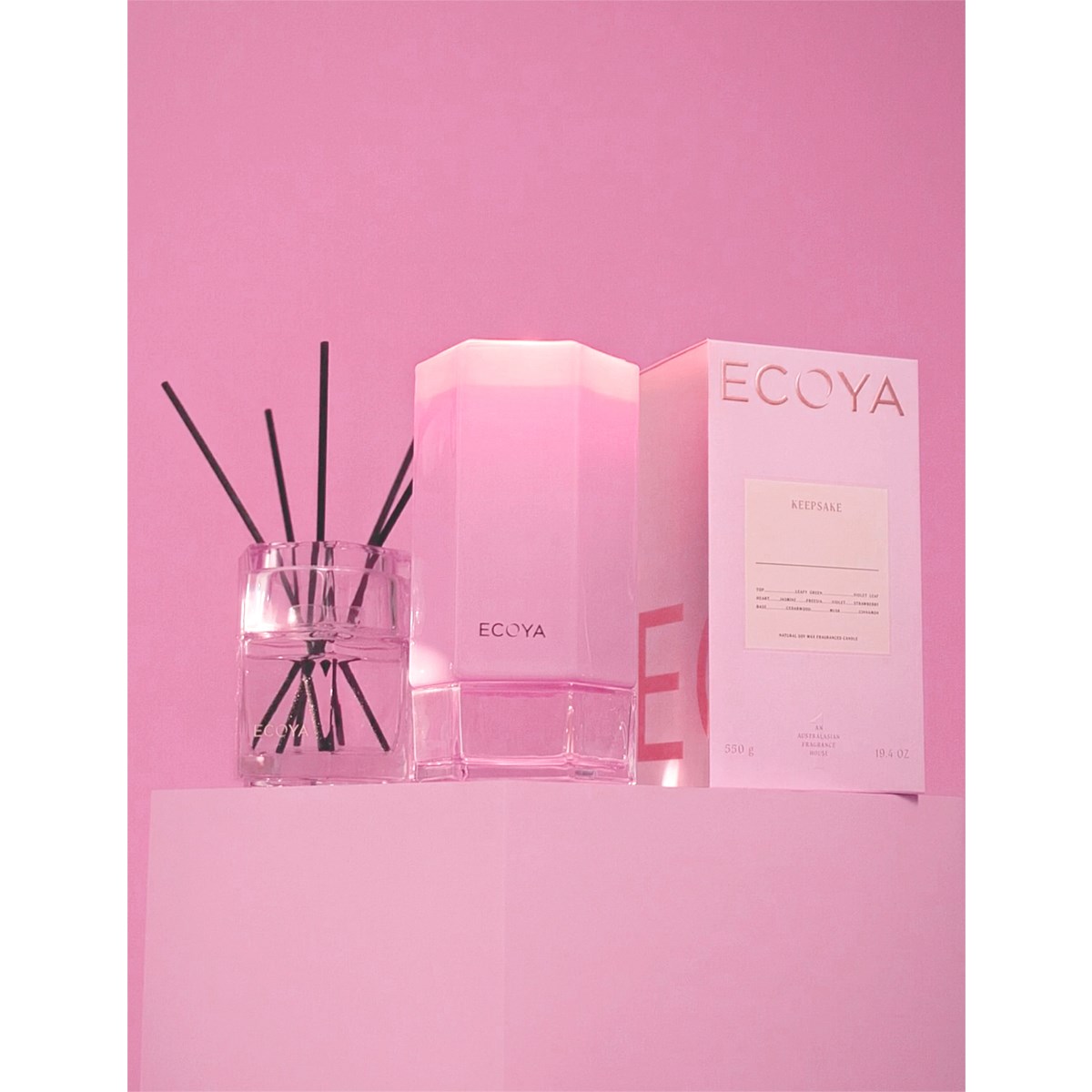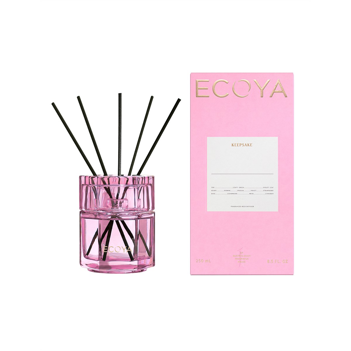A fragrance that stays with you. Housed in a sculptural six-sided coloured cut glass vessel and featuring five black reed diffusers, the Keepsake Diffuser is made for those who appreciate fragrance as more than a fragrance - it’s a memory, a moment, a feeling.