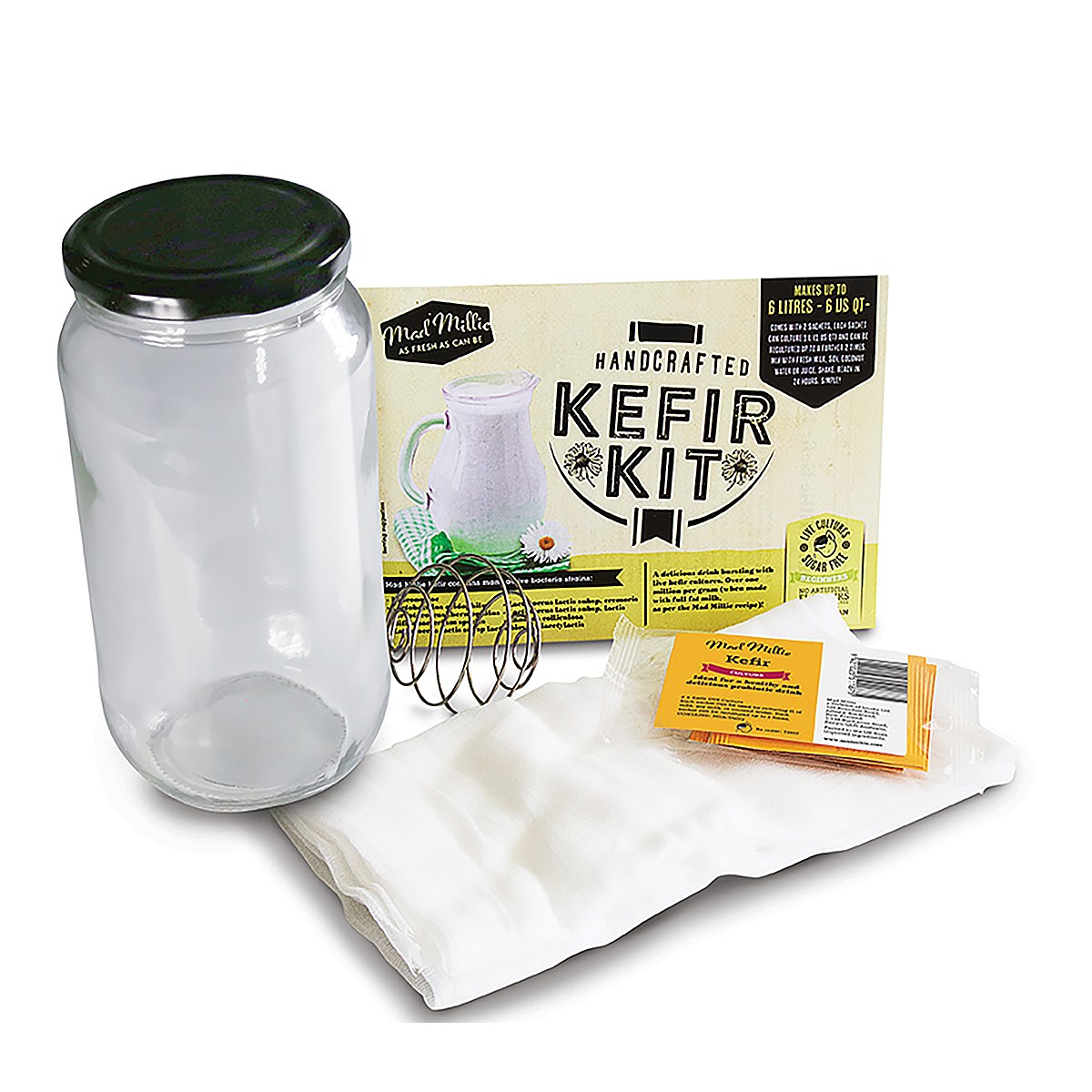The new Mad Millie Kefir Kit contains everything you need to make it yourself. Just add the culture to your own milk, soy, coconut milk or juice and leave for 24 hours, shake and enjoy!