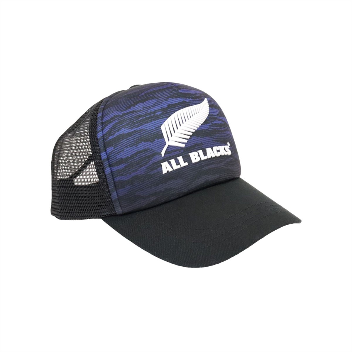 Sublimated camo print front with raised PU logo.