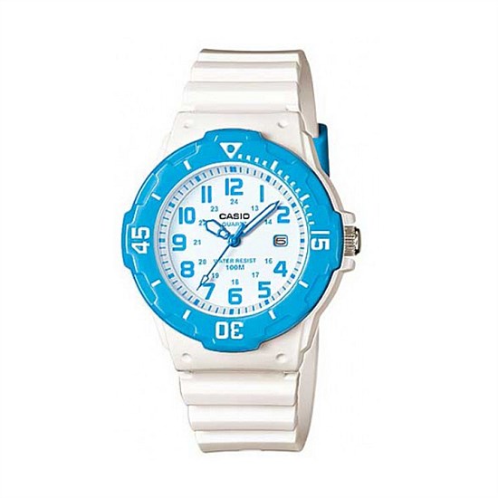 Simple and compact, these dive inspired ladies and childrens 3-hand analog timepieces feature 100M water resistance, a bi-directional rotating bezel and date display.