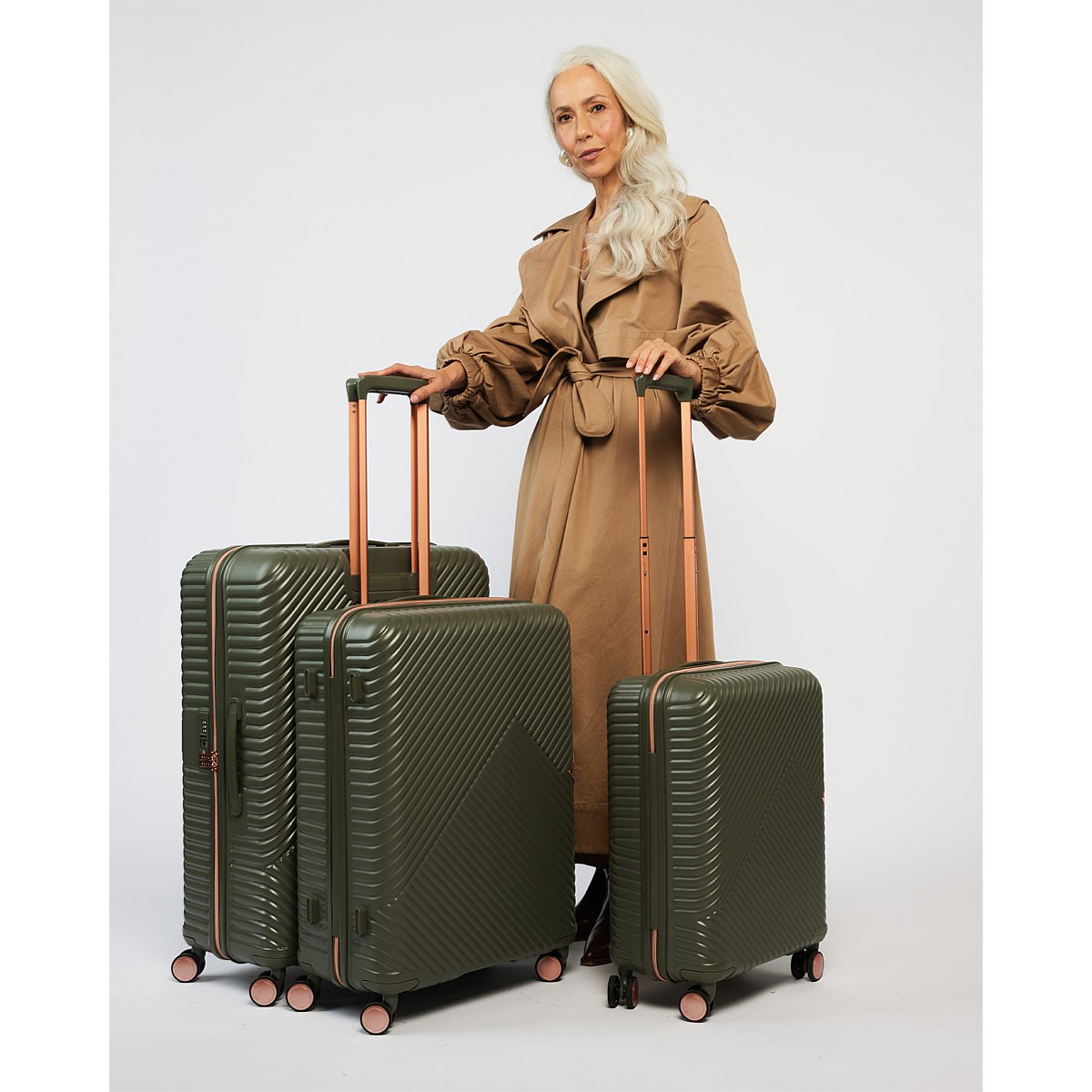 Saben's now iconic luggage has become easily identifiable with its striking silhouettes and unique rose gold hardware. Just like our handbags, every detail is designed with deliberate intent. Made from moulded polycarbonate with metallic rose gold detailing for a lightweight and robust construction.