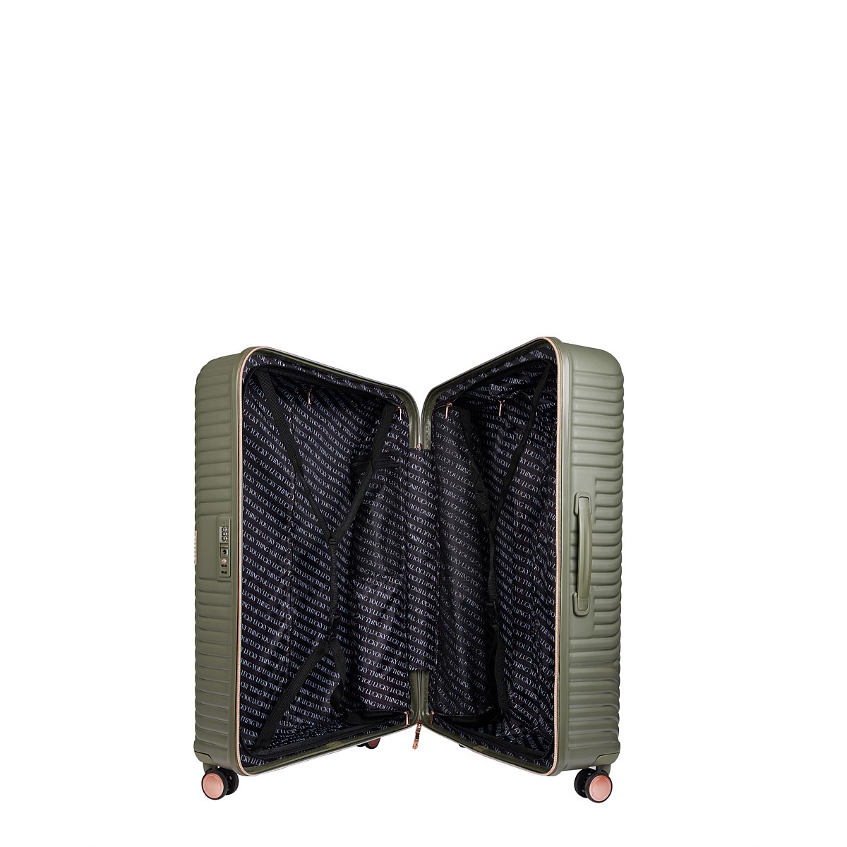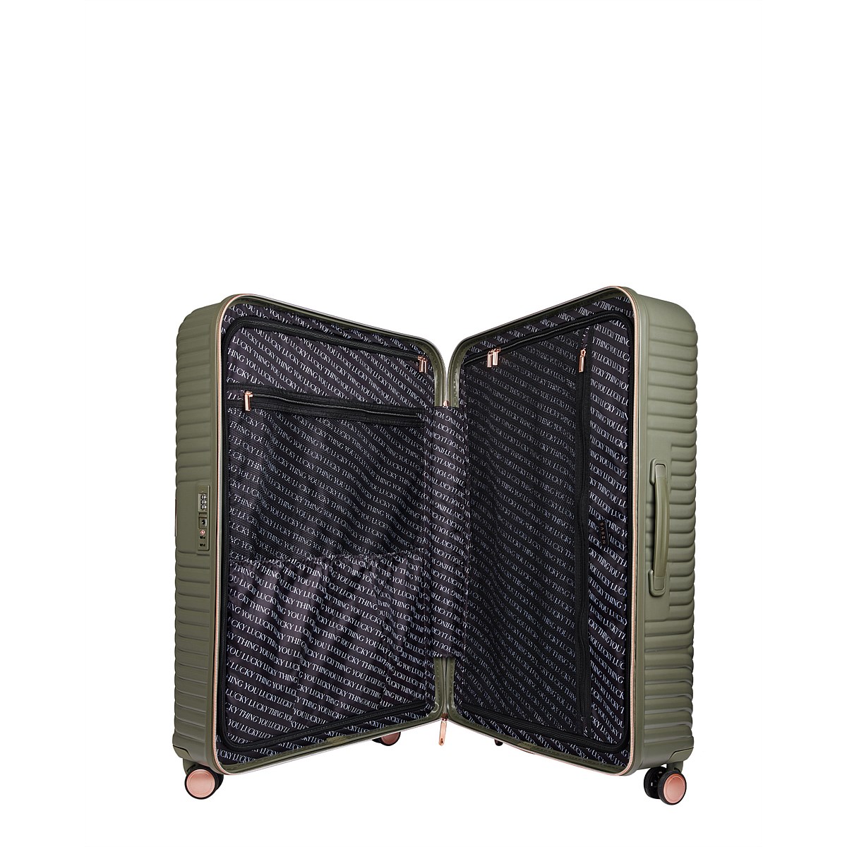 Each case has two separate zip compartments for packing and internal zip pockets with feature ‘You Lucky Lucky Thing’ printed lining. You now have the perfect way to cushion that bottle of wine you packed for the holiday.