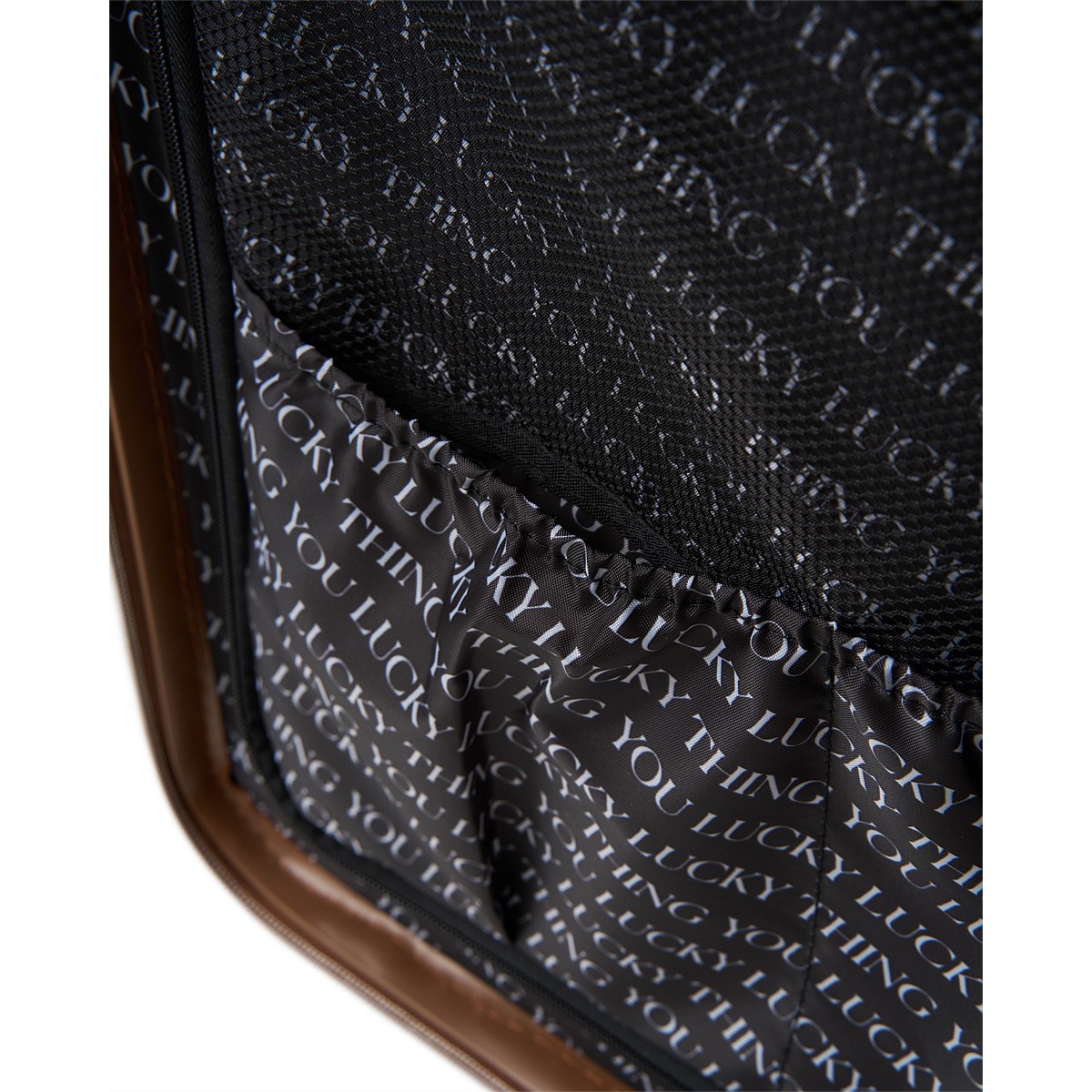 Each case has two separate zip compartments for packing and internal zip pockets with feature ‘You Lucky Lucky Thing’ printed lining. You now have the perfect way to cushion that bottle of wine you packed for the holiday.