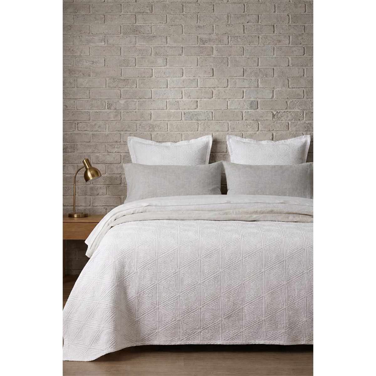 The Lauren Euro Pillowcase (Each) features an elegant textured design in a soft, neutral white tone. Its surface is detailed with an intricate geometric pattern formed by stitched lines that create repeating triangular shapes across the fabric. This subtle raised texture adds depth and visual interest while maintaining a clean and refined aesthetic. The Lauren Euro Pillowcase blends classic craftsmanship with modern simplicity. The crisp white color and geometric quilted pattern create a timeless look that feels fresh, sophisticated, and versatile for a variety of bedroom styles. 100% Cotton and made in Portugal, Available in bedspreads and coverlets only (Euros and Standards sold seperately) as well as QB and KB Bedspread sets and coverlet sets.