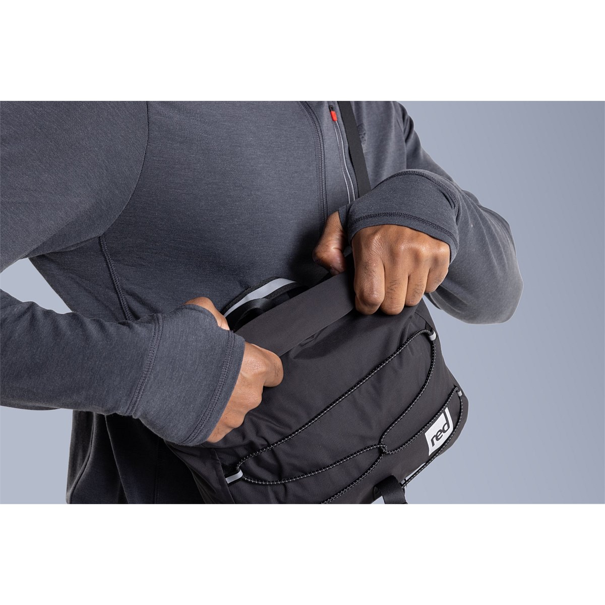 Keep your phone or cash accessible in the external zipped pocket, concealed behind the soft, breathable mesh padded waistband. Internal pockets organise smaller items, with a zipped compartment for valuables. A low-profile handlebar attachment system is integrated within the zipped pocket, offering secure, streamlined mounting when needed.