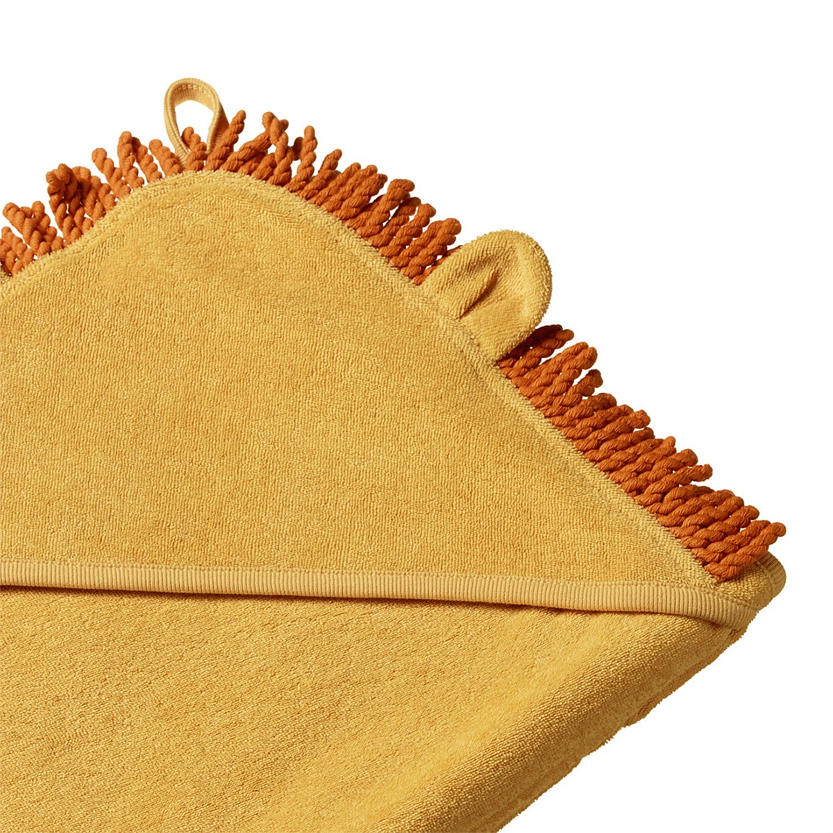 Wrap baby up nice and snug after bathtime with this soft and luxurious hooded towel. The cosy hood features adorable lion ears and tassel mane detailing. A looped tag on the hood allows for easy hanging. The perfect gift for little ones that will make them excited for bath time.