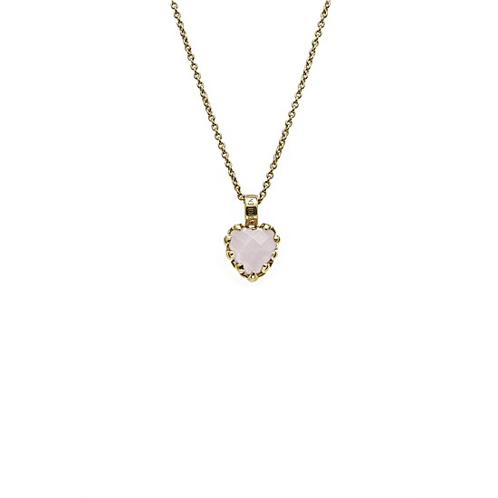 Gold claws hold tight to a natural Rose Quartz heart stone.