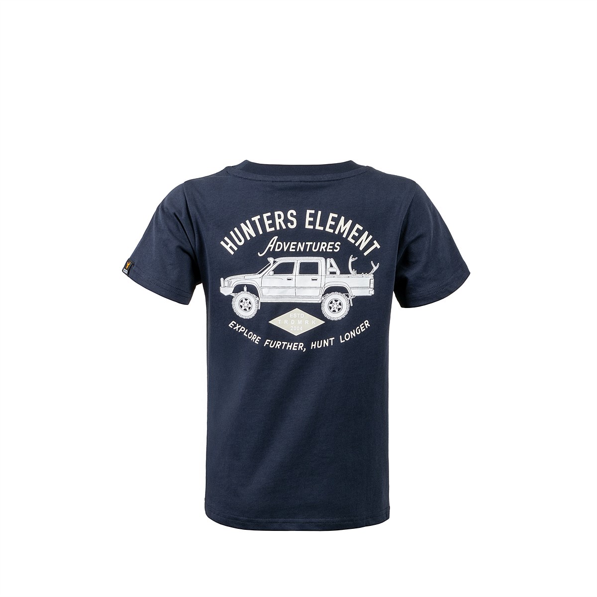 The Lux Tee Kids’ comes in Navy, with a bold stamp on the back of a ute carrying a stag – a nod to the thrill of the chase and a cheeky touch for any outdoors fan.