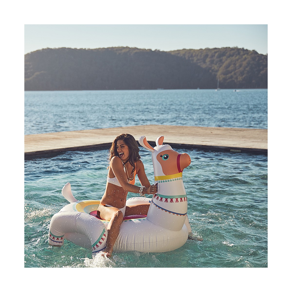 INFLATE YOUR SUMMER. The makeover your pool has been waiting for. Make the sunny season one to remember with Sunnylife's Insta-famous floats. Inflate your summer and take it to luxe level - climb aboard the Llama Luxe Ride-On Float.