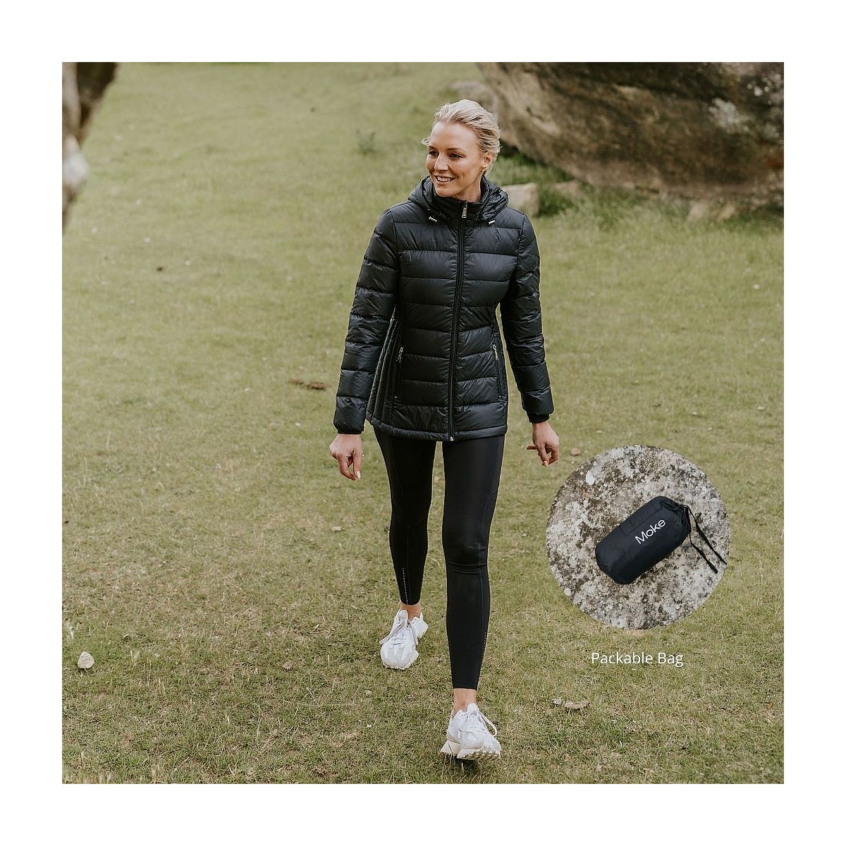 LYNN by MOKE is a lightweight mid length light weight jacket. Like all MOKE packable down styles, it has fantastic warmth to weight ratio. This garment features a detachable hood with flattering side quilt patterns. A staple style for winter with exciting bold new colours available.