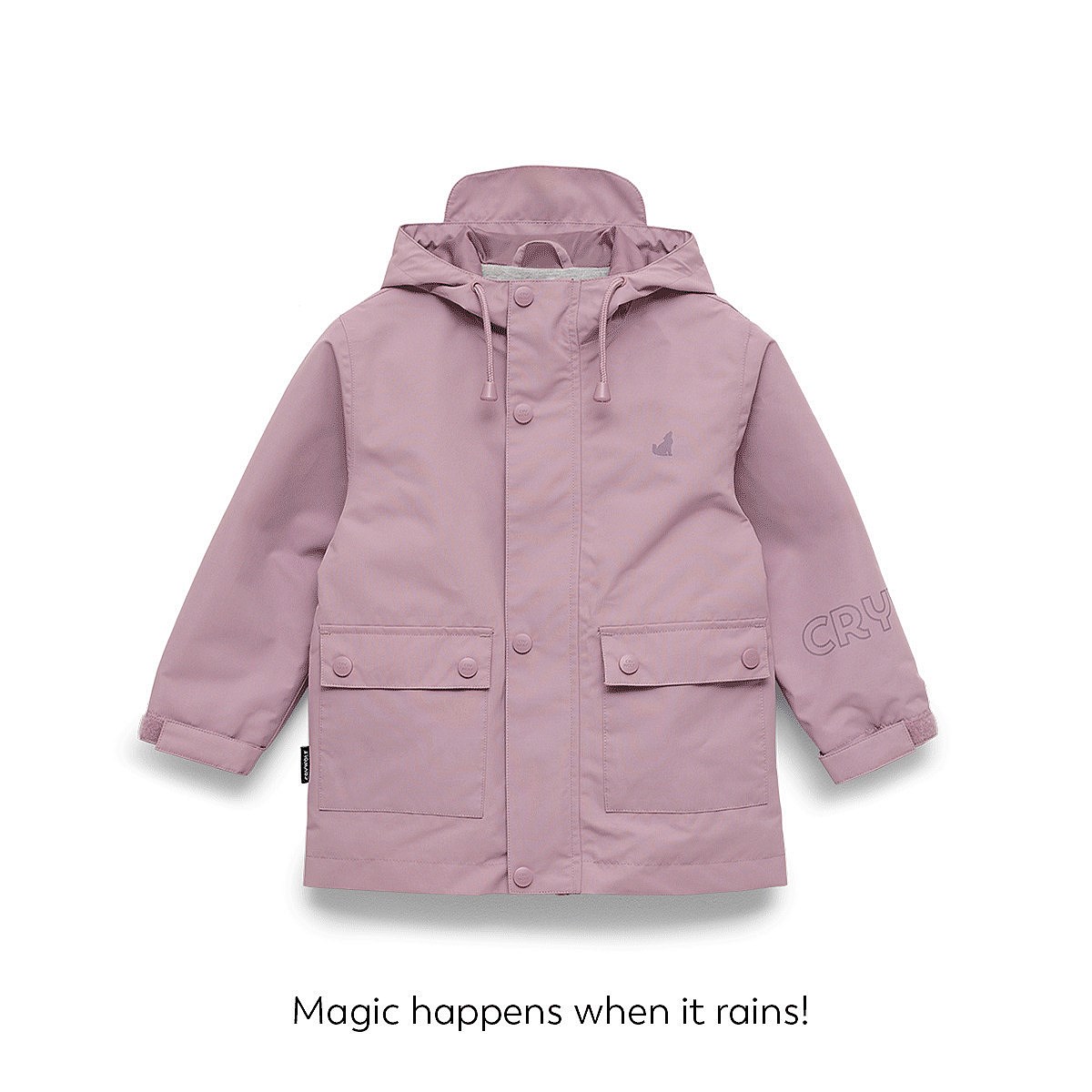 Turn rainy days into magical adventures with the Crywolf Magic Jacket. Watch a hidden print appear when water touches the fabric, just add rain and let the fun begin. Once dry, the print fades away, returning the jacket to its original colour. Made with recycled materials as part of our commitment to sustainability, this waterproof and wind-protective jacket is lined through the body and hood for extra comfort on every adventure.