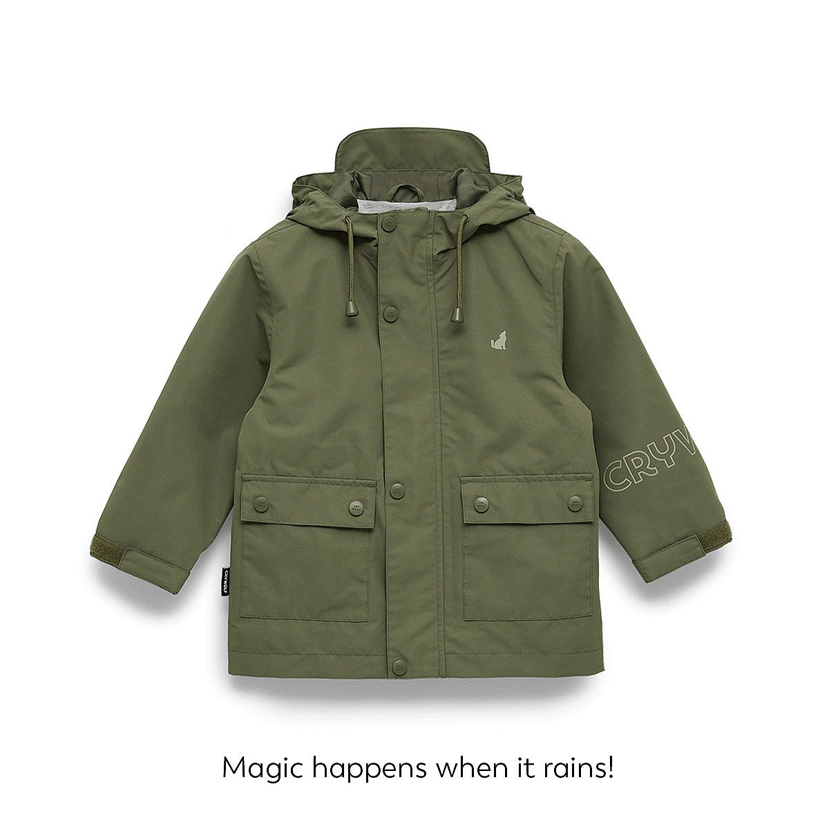 Turn rainy days into magical adventures with the Crywolf Magic Jacket. Watch a hidden print appear when water touches the fabric, just add rain and let the fun begin. Once dry, the print fades away, returning the jacket to its original colour. Made with recycled materials as part of our commitment to sustainability, this waterproof and wind-protective jacket is lined through the body and hood for extra comfort on every adventure.