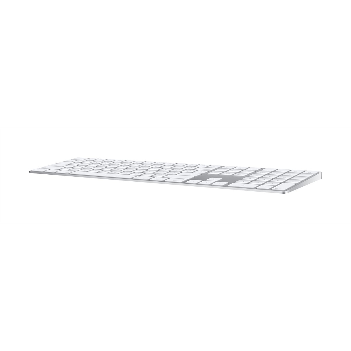 Magic Keyboard with Numeric Keypad features an extended layout, with document navigation controls for quick scrolling and full-sized arrow keys for gaming. A scissor mechanism beneath each key allows for increased stability, while optimised key travel and a low profile provide a comfortable and precise typing experience. The numeric keypad is also great for spreadsheets and finance applications. And the built-in rechargeable battery is incredibly long-lasting, powering your keyboard for about a month or more between charges.