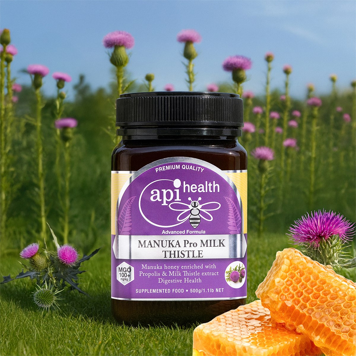 ApiHealth Manuka Honey with Milk Thistle and Propolis combines three premium natural ingredients to help you feel your best every day. This smooth, rich blend features authentic New Zealand Manuka Honey, traditional Milk Thistle extract, and New Zealand Propolis.