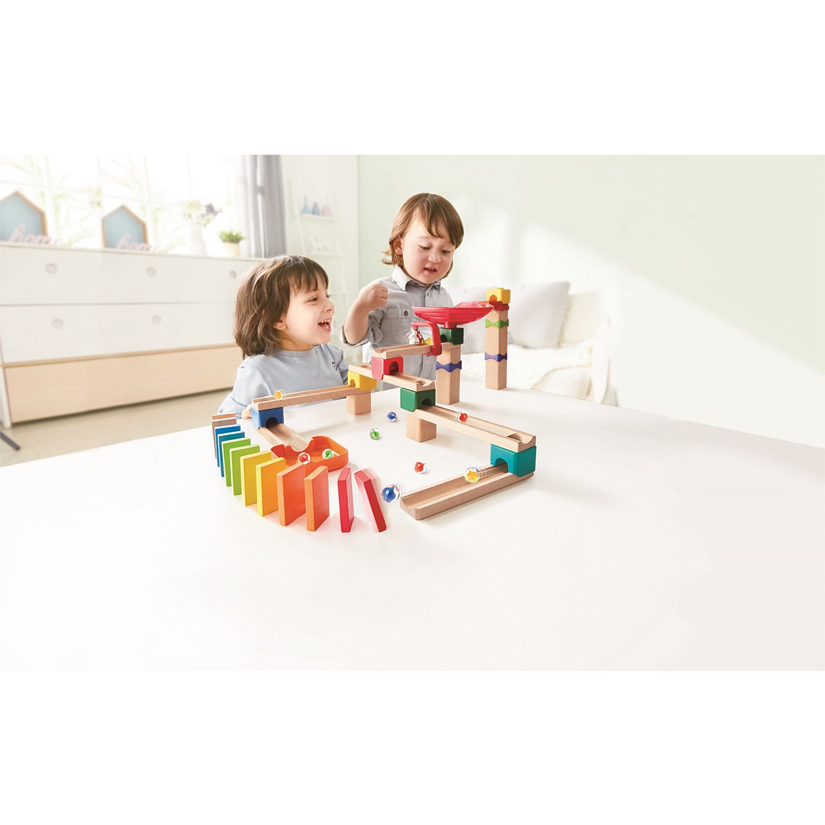 Get started building your own marble runs with this Quadrilla beginner’s set. Drop two marbles into the top and watch as they race down different paths to the bottom.