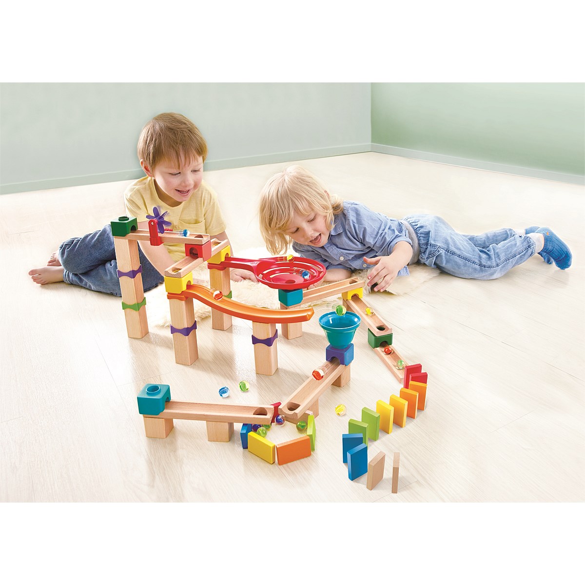 It provides quality time for the whole family to play together, which is the best gift for you and your loved ones. It provides endless creative building possibilities and encourages spatial thinking and problem solving. Each of the seven different color blocks has a different function, and it's the world's only kinetic marble run. Providing over a thousand happy playing hours, Quadrilla is worth every penny.