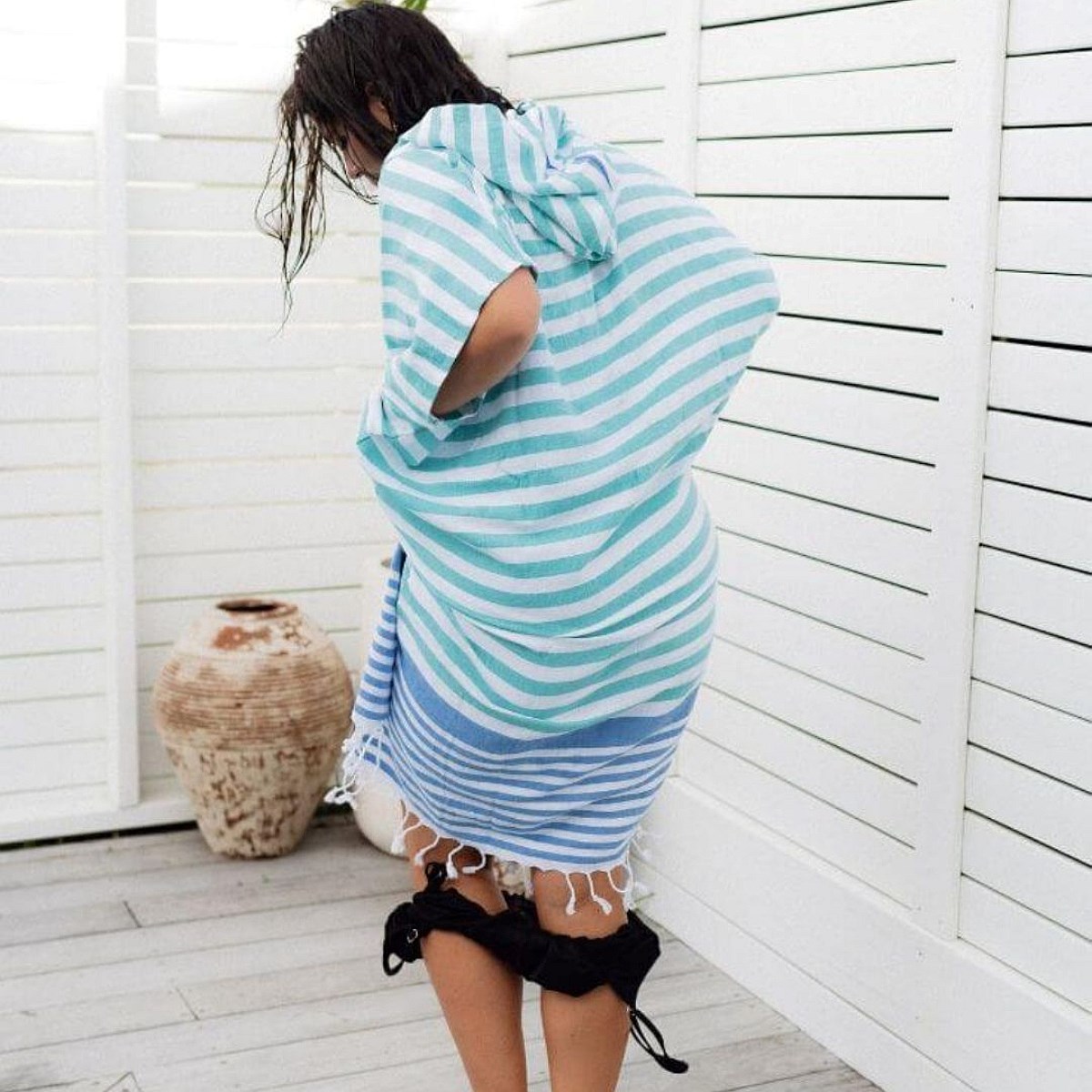 A cozy, lightweight towel poncho to throw on and drive home in after the pools?