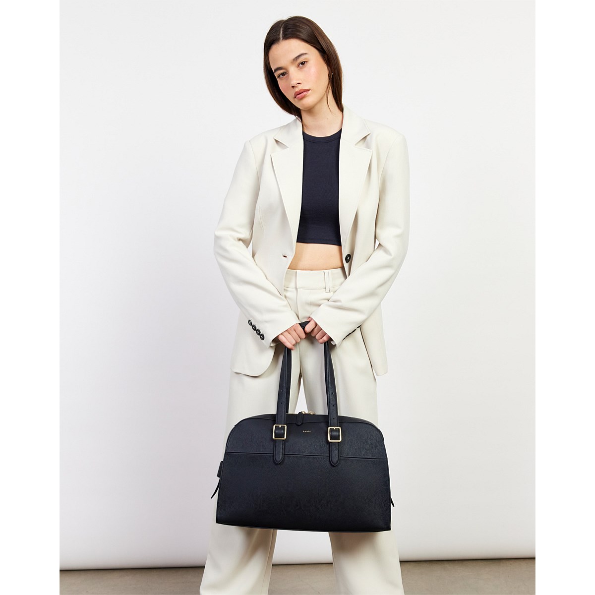 Her structured bowler shape is elevated with buckle details on the shoulder straps — a nod to traditional craftsmanship with a distinctly modern edge. The secure zip closure keeps everything safe, while the internal pocket ensures your essentials stay organised and within easy reach.