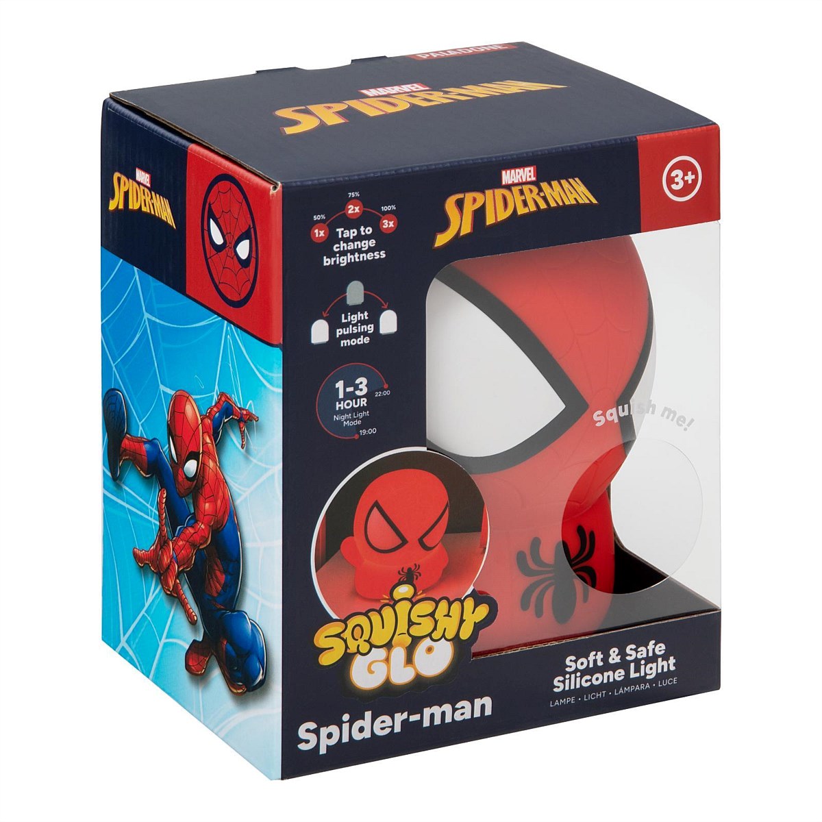 Bring some fun yet gentle lighting to your child's bedtime routine with this Marvel Spider-Man SquishyGlo Silicone Light.
