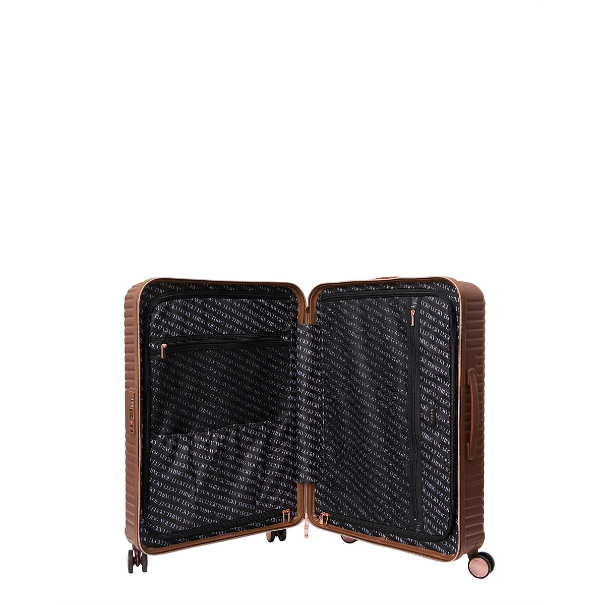 Each case has two separate zip compartments for packing and internal zip pockets with feature ‘You Lucky Lucky Thing’ printed lining. You now have the perfect way to cushion that bottle of wine you packed for the holiday.