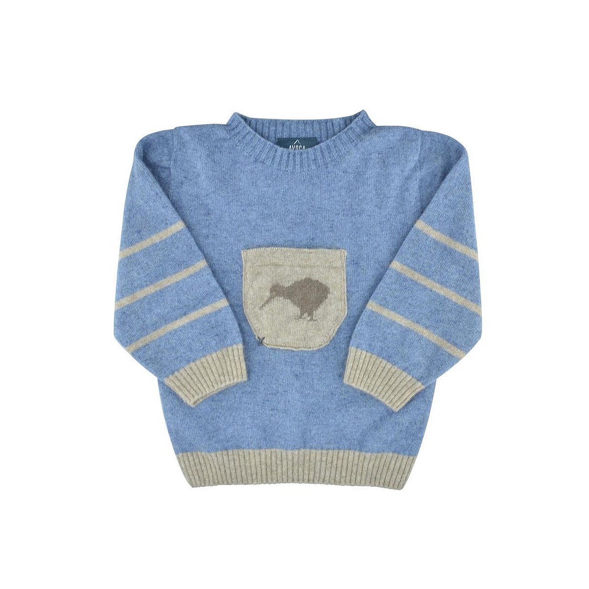 The softest Possum Merino featuring an adorable sweater with a kiwi pocket on the front.