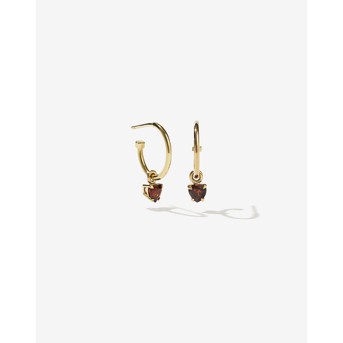 Petite and glowing 4mm heart stones, hugged by a simple claw setting and suspended from our signature hoops.